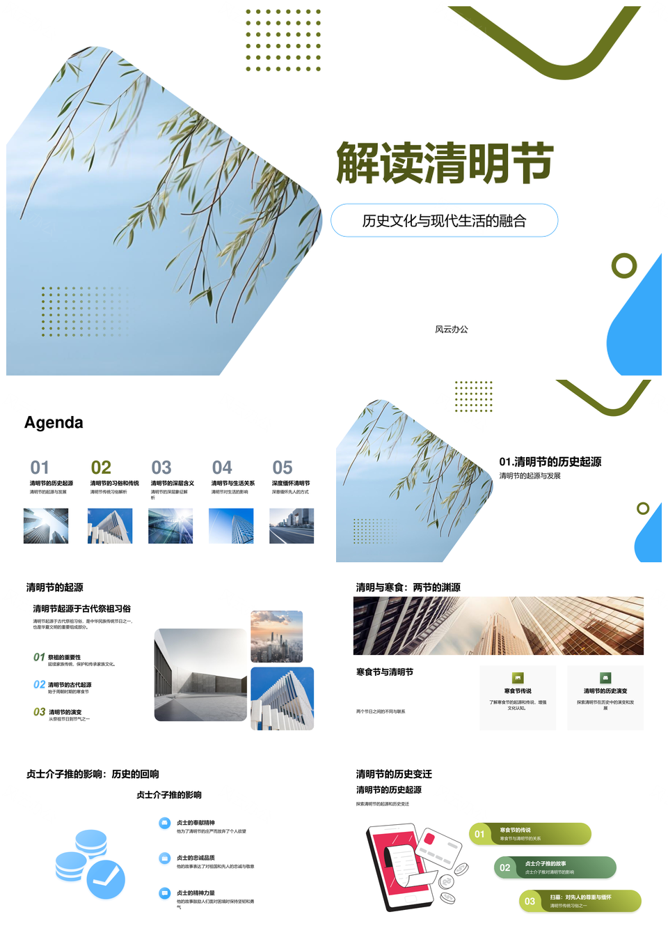 这是一张清明节历史文化寒食介子推与现代扫墓踏青风筝柳枝PPT模板,包含清明节、历史文化、寒食、介子推、现代、扫墓、踏青、风筝、柳枝等主题内容,也可用作清明节历史文化寒食介子推、寒食介子推现代扫墓踏青、清明节扫墓踏青风筝柳枝、历史文化寒食介子推柳枝、寒食踏青风筝柳枝、扫墓踏青风筝柳枝、现代扫墓踏青风筝、清明节历史文化寒食、寒食介子推现代扫墓、现代扫墓踏青风筝、清明节寒食扫墓踏青、清明节踏青风筝柳枝、扫墓踏青风筝柳枝、踏青风筝柳枝、寒食介子推柳枝等PPT场景使用。 风云办公提供的清明节历史文化寒食介子推与现代扫墓踏青风筝柳枝PPT模板,下载格式为pptx,一共28页,作品中文字及图均可以修改和编辑,图片更改请在作品中右键图片并更换,文字修改请直接点击文字进行修改。