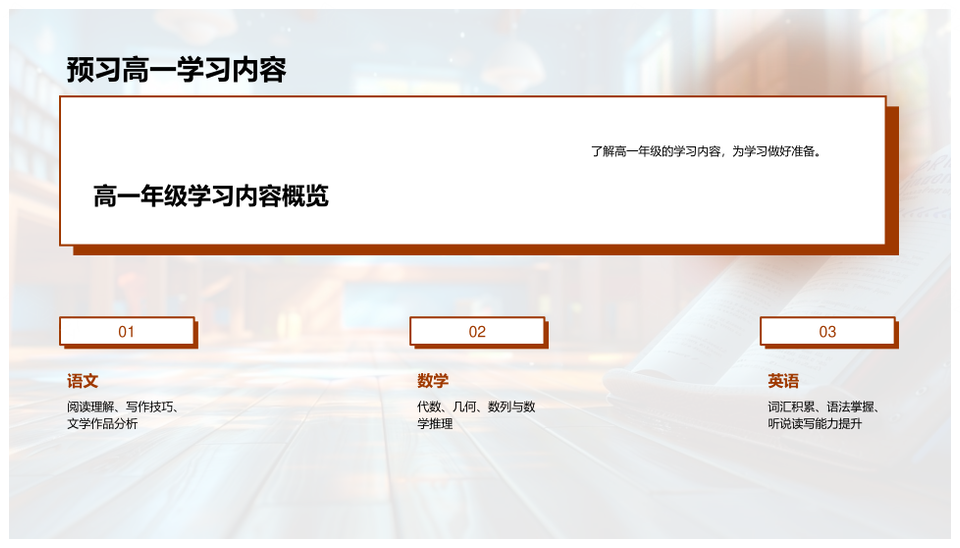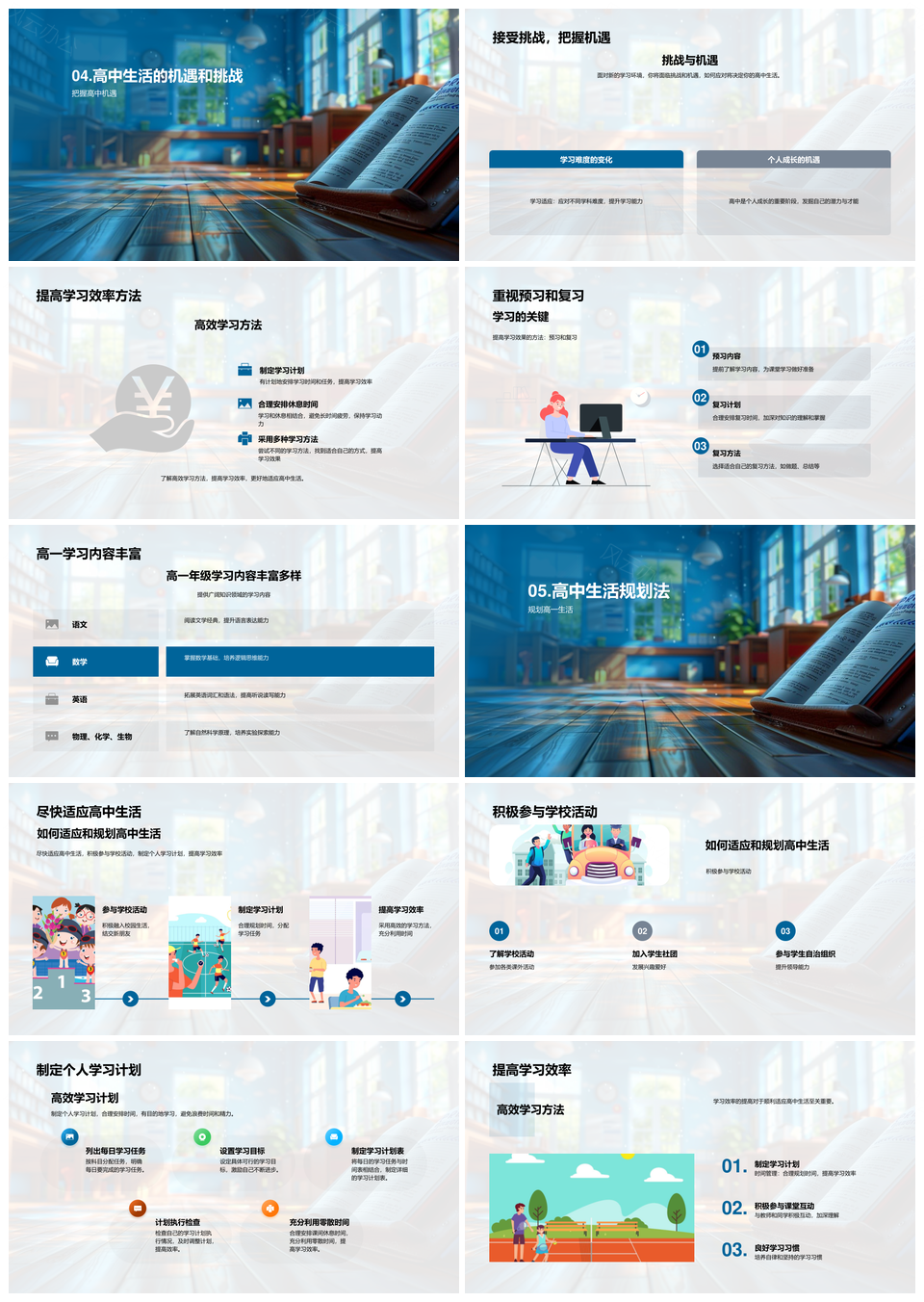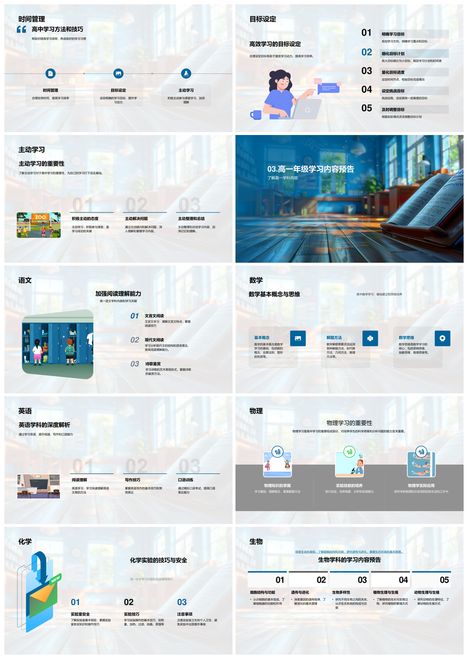 这是一张高一新生高效学习策略时间目标管理指导PPT模板,包含高一新生、高效学习策略、时间、目标、管理、指导等主题内容,也可用作高一新生高效学习策略时间、高一新生高效学习策略、新生高效学习策略时间、高效学习策略时间目标、学习策略时间目标管理、策略时间目标管理指导、高一新生高效学习、新生高效学习策略、高效学习策略时间、学习策略时间目标、策略时间目标管理、时间目标管理指导、高一新生高效、高效学习策略、时间目标管理等PPT场景使用。 风云办公提供的高一新生高效学习策略时间目标管理指导PPT模板,下载格式为pptx,一共29页,作品中文字及图均可以修改和编辑,图片更改请在作品中右键图片并更换,文字修改请直接点击文字进行修改。