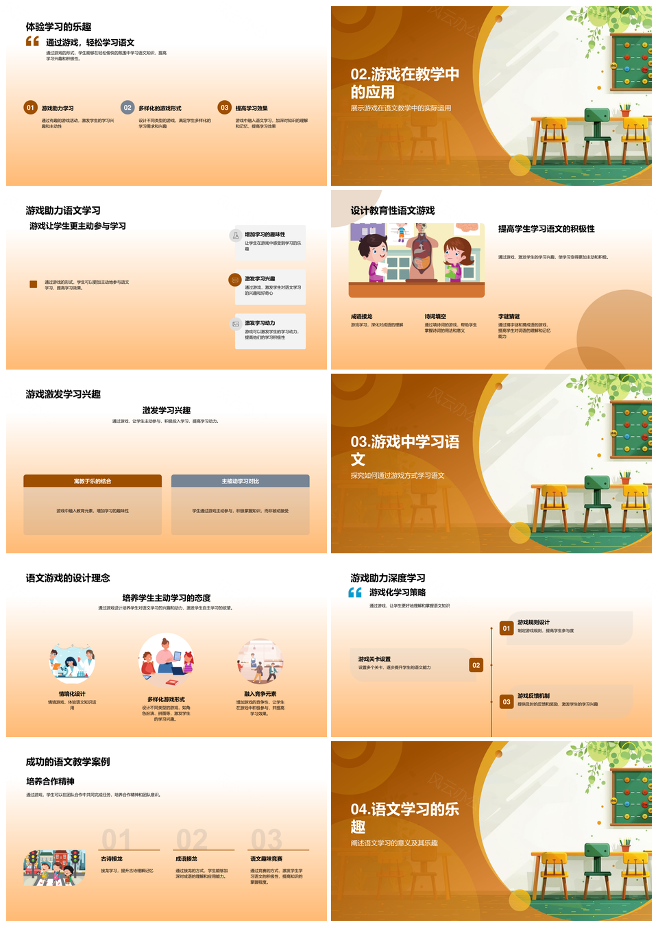 风云办公提供的互动游戏化语文教学提升学习兴趣PPT模板,下载格式为pptx,一共25页,作品中文字及图均可以修改和编辑,图片更改请在作品中右键图片并更换,文字修改请直接点击文字进行修改。