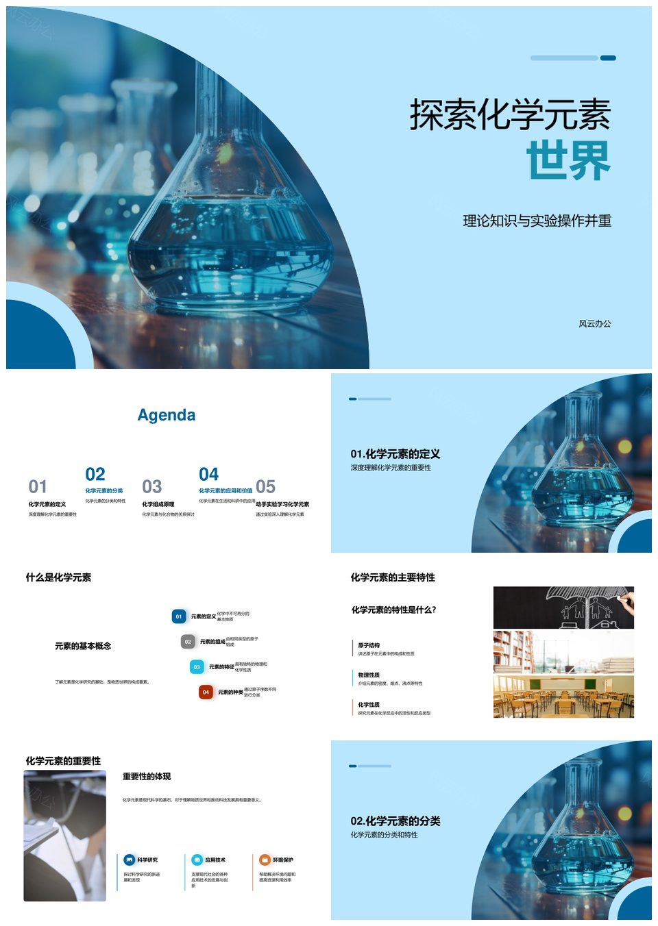 风云办公提供的化学元素理论实验教育应用探索PPT模板,下载格式为pptx,一共23页,作品中文字及图均可以修改和编辑,图片更改请在作品中右键图片并更换,文字修改请直接点击文字进行修改。