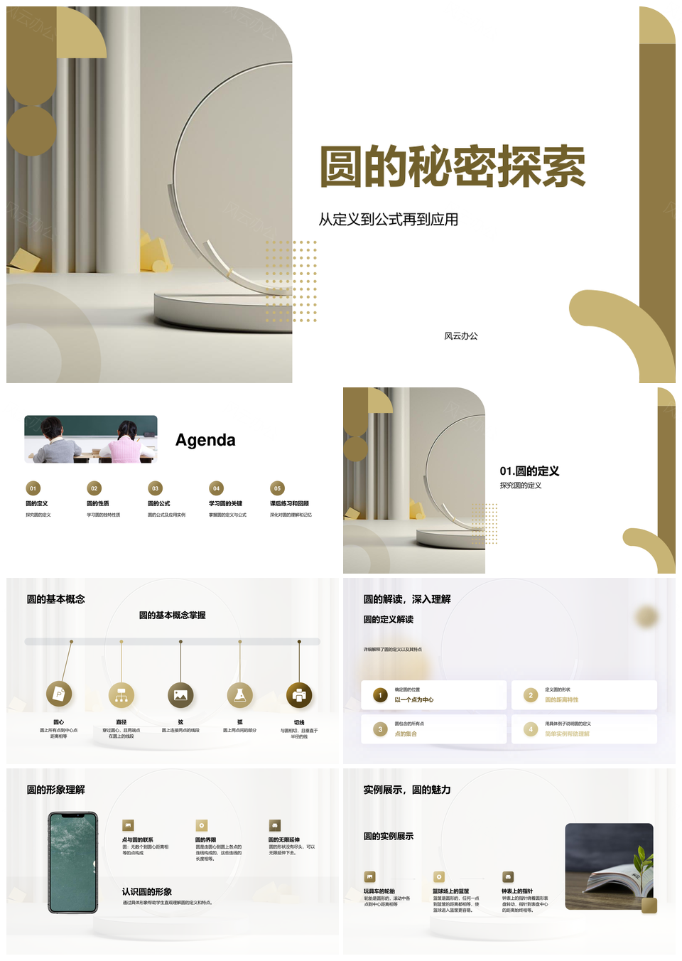 风云办公提供的圆的定义性质周长面积公式应用实例PPT模板,下载格式为pptx,一共33页,作品中文字及图均可以修改和编辑,图片更改请在作品中右键图片并更换,文字修改请直接点击文字进行修改。