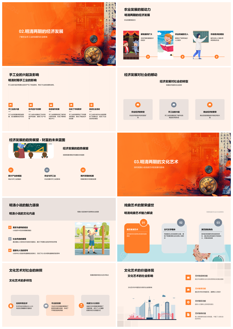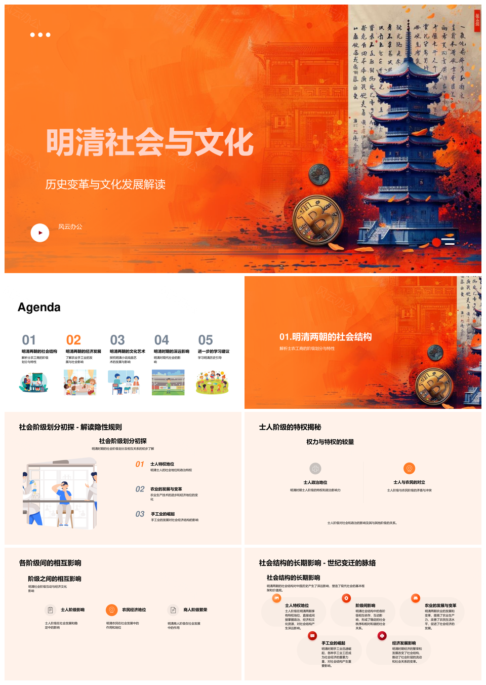 明清社会阶级农工文艺历史贡献现代影响PPT模板推荐