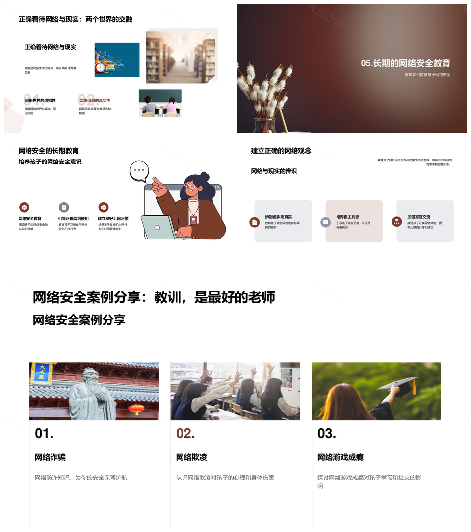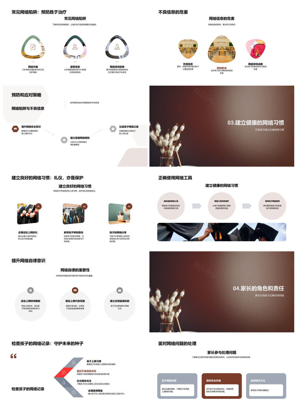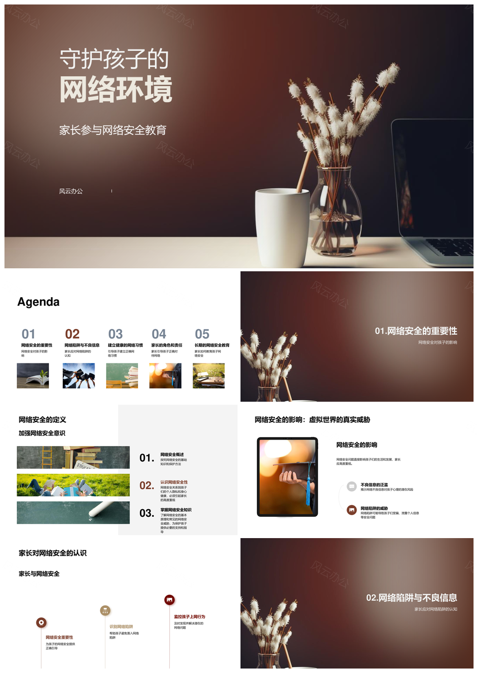 风云办公提供的家长守护孩子网络安全与自律责任PPT模板,下载格式为pptx,一共23页,作品中文字及图均可以修改和编辑,图片更改请在作品中右键图片并更换,文字修改请直接点击文字进行修改。