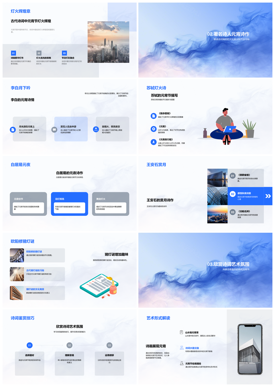 这是一张2025元宵节诗词文化讲座李白苏轼节日习俗诗词鉴赏PPT模板,包含2025、元宵节、诗词、文化、讲座、李白、苏轼、节日、习俗、鉴赏等主题内容,也可用作2025元宵节诗词文化讲座、李白苏轼节日习俗诗词鉴赏、元宵节诗词文化讲座李白、李白苏轼节日习俗诗词、2025元宵节李白苏轼、苏轼节日习俗诗词鉴赏、元宵节李白苏轼诗词、诗词文化讲座李白苏轼、李白苏轼节日习俗、苏轼节日习俗诗词、2025元宵节诗词文化、元宵节诗词文化、诗词文化讲座、李白苏轼诗词、2025元宵节等PPT场景使用。 风云办公提供的2025元宵节诗词文化讲座李白苏轼节日习俗诗词鉴赏PPT模板,下载格式为pptx,一共33页,作品中文字及图均可以修改和编辑,图片更改请在作品中右键图片并更换,文字修改请直接点击文字进行修改。