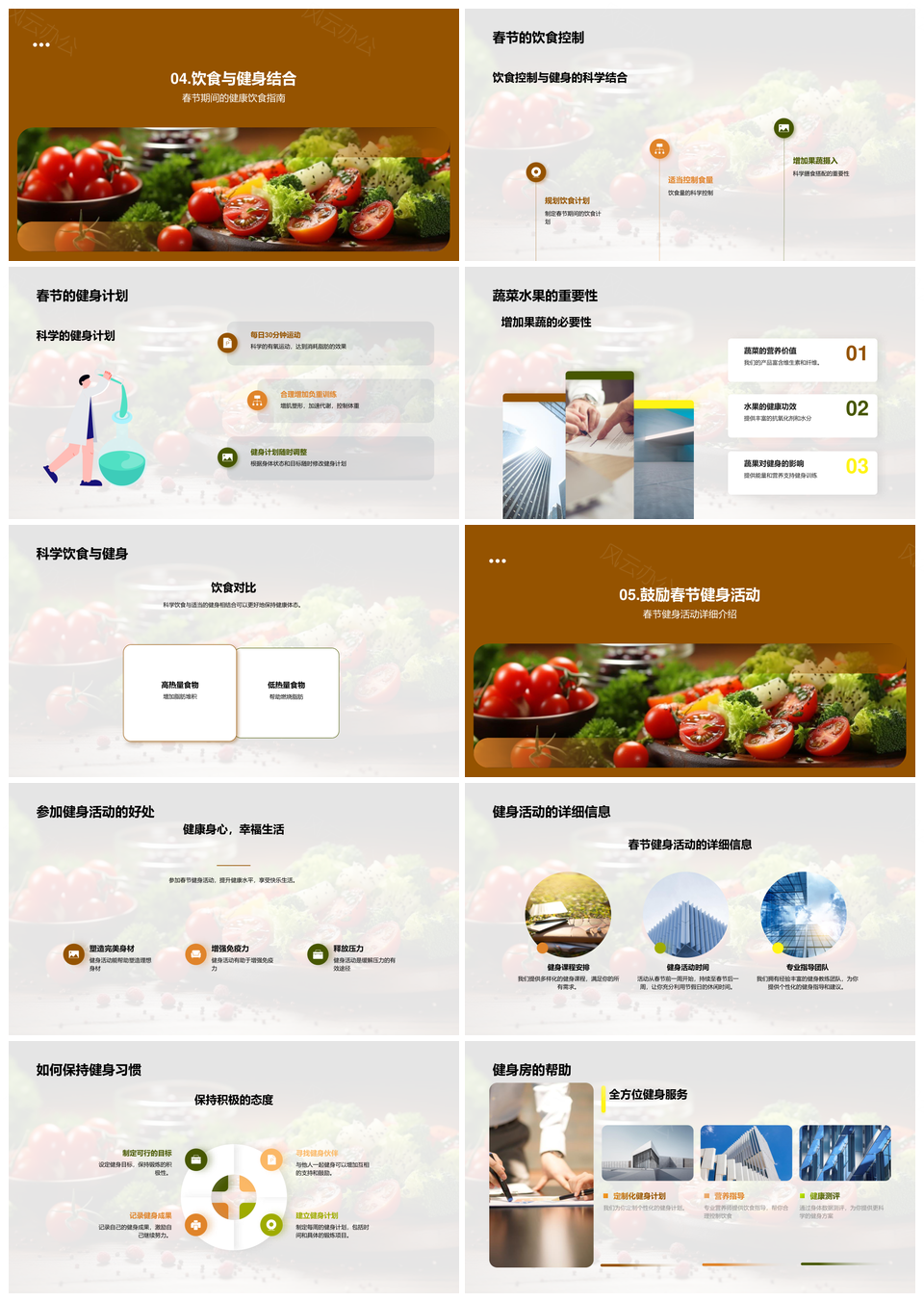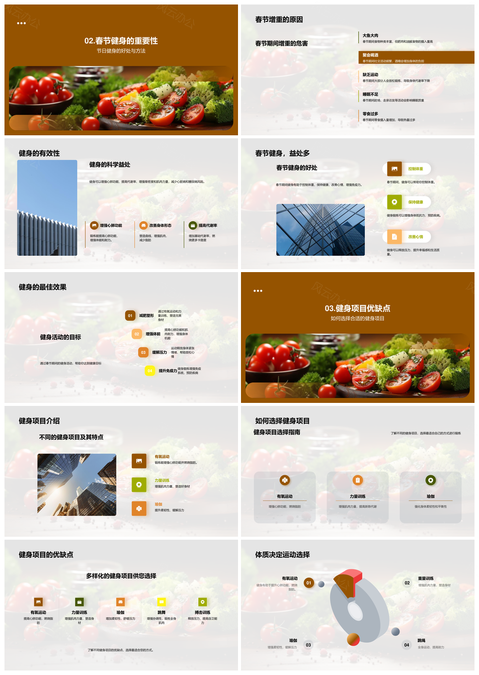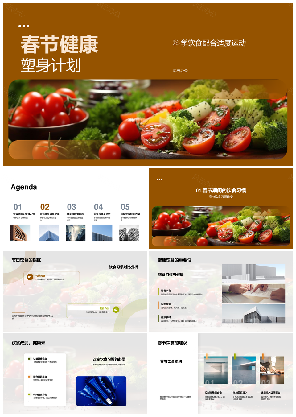 风云办公提供的春节科学饮食适度运动塑身计划PPT模板,下载格式为pptx,一共28页,作品中文字及图均可以修改和编辑,图片更改请在作品中右键图片并更换,文字修改请直接点击文字进行修改。