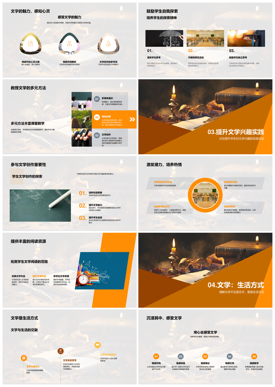 风云办公提供的文学之魔教学创作多元探索生活之书PPT模板,下载格式为pptx,一共23页,作品中文字及图均可以修改和编辑,图片更改请在作品中右键图片并更换,文字修改请直接点击文字进行修改。