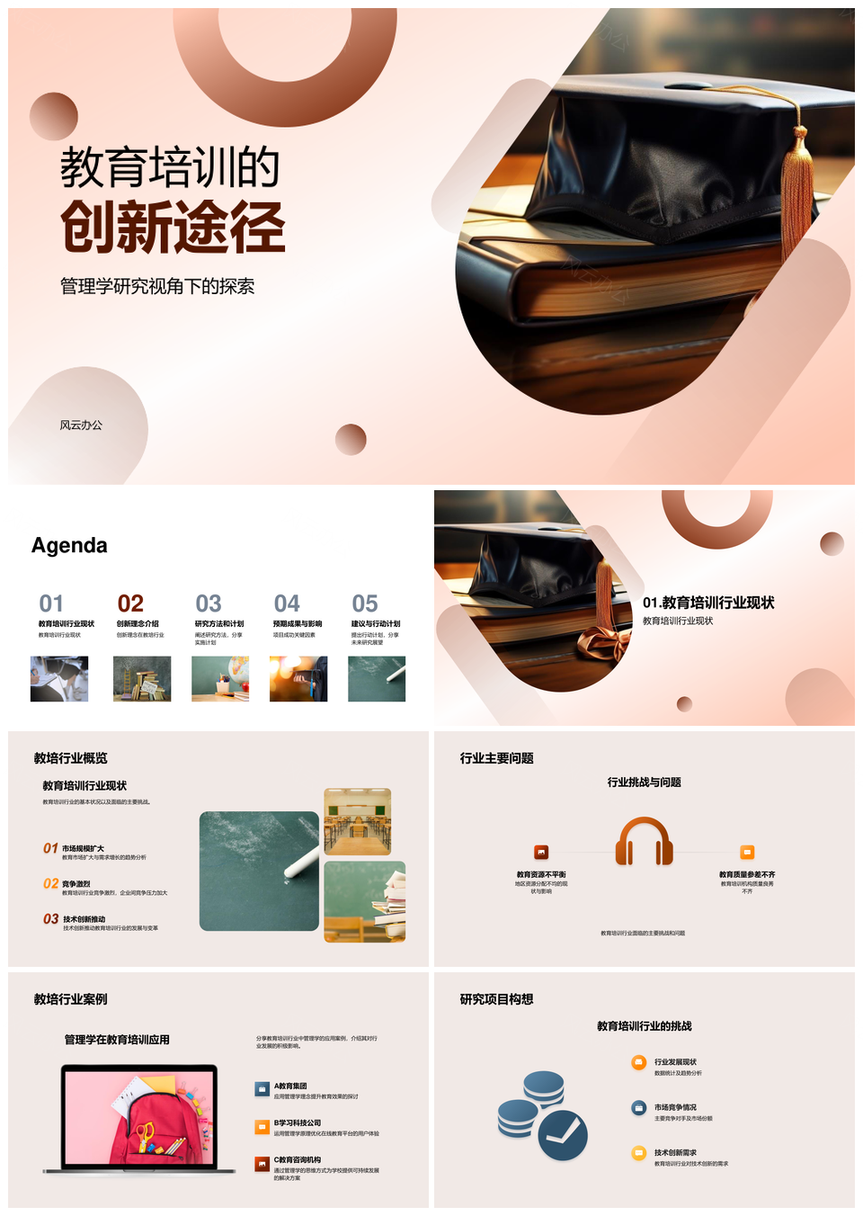 教育培训创新途径管理研究项目挑战理念方法计划PPT模板推荐