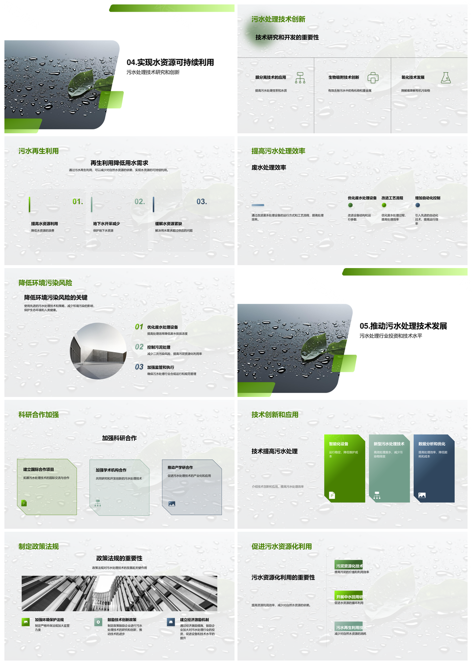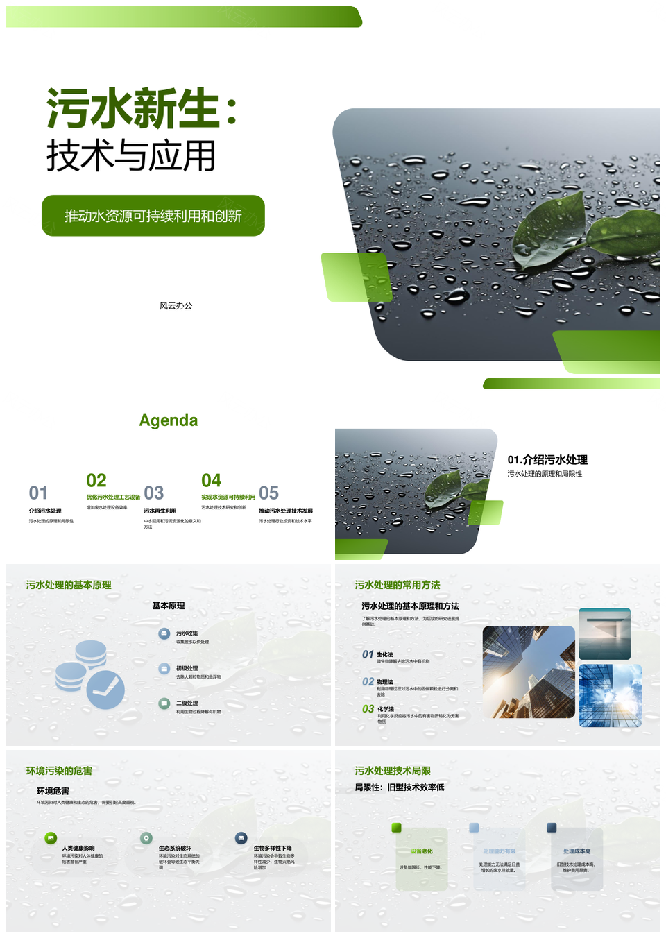 风云办公提供的污水再生技术创新应用守护清洁水源PPT模板,下载格式为pptx,一共30页,作品中文字及图均可以修改和编辑,图片更改请在作品中右键图片并更换,文字修改请直接点击文字进行修改。