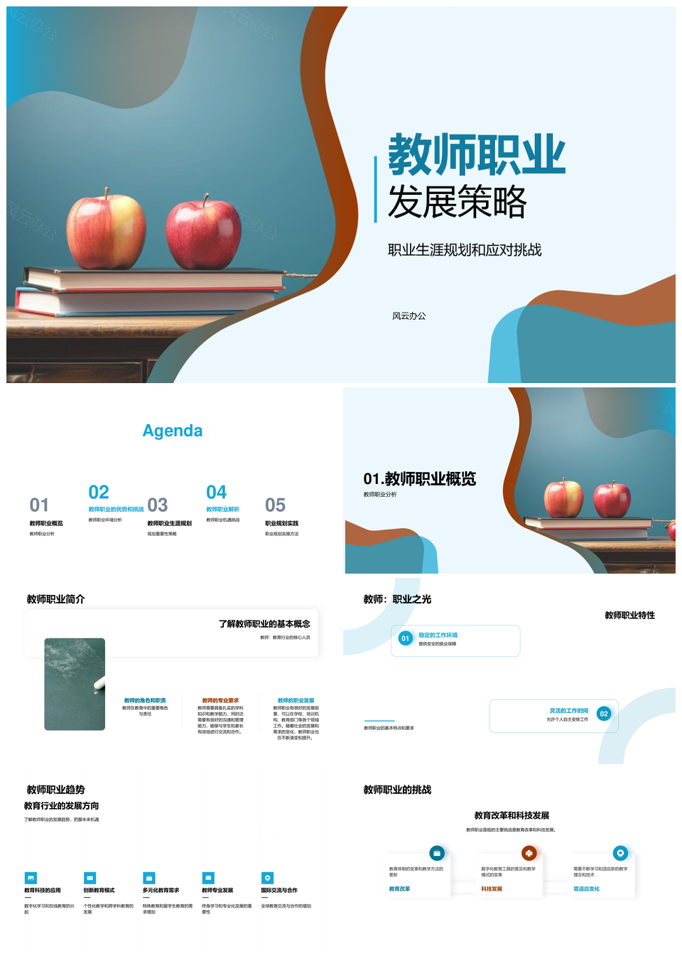 风云办公提供的教师职业发展教育科技改革趋势规划PPT模板,下载格式为pptx,一共29页,作品中文字及图均可以修改和编辑,图片更改请在作品中右键图片并更换,文字修改请直接点击文字进行修改。