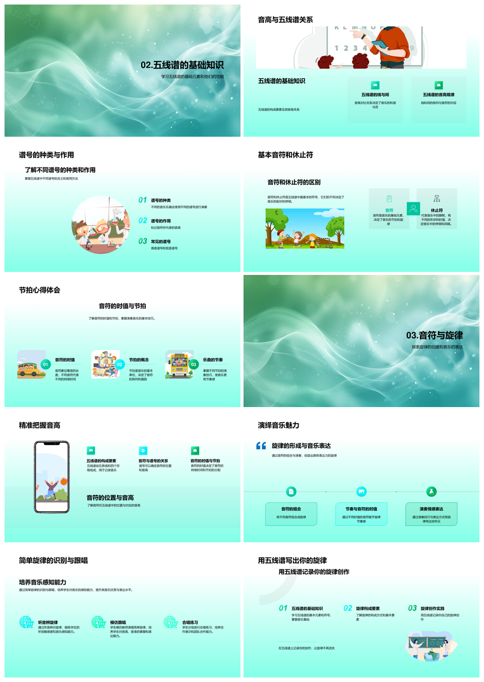 2025小学音乐五线谱基础历史谱号音符音高教程PPT模板推荐