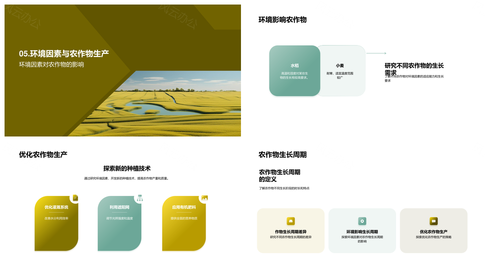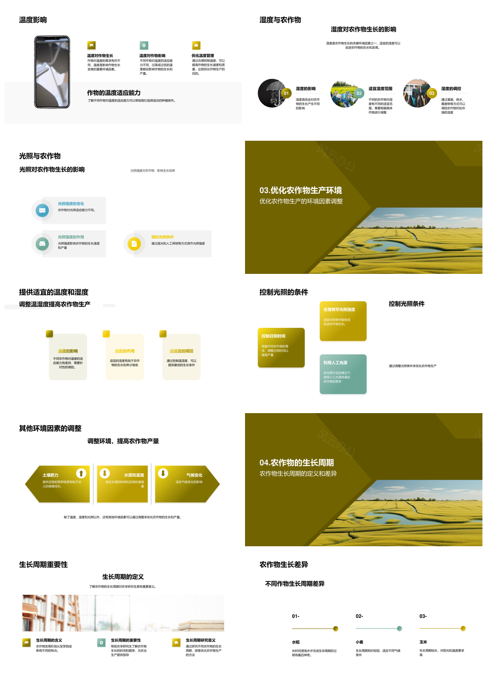风云办公提供的农作物类型生长环境因素农学师生研究PPT模板,下载格式为pptx,一共22页,作品中文字及图均可以修改和编辑,图片更改请在作品中右键图片并更换,文字修改请直接点击文字进行修改。