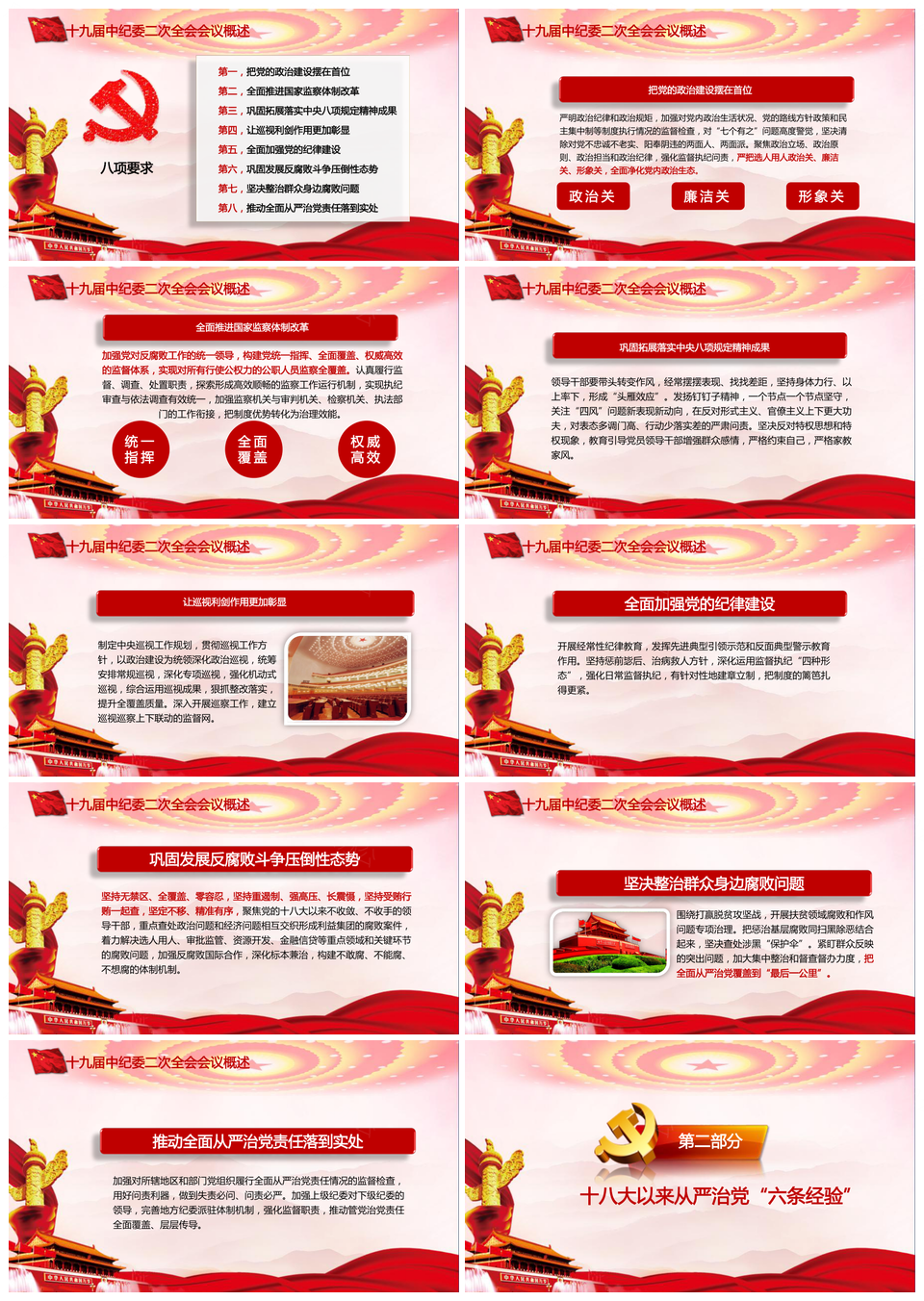 这是一张红色中纪委全体会议PPT模板,包含红色、第十九届、中纪委、第二次、全体会议、公报、重整行装、再出发等主题内容,也可用作第十九届中纪委第二次全体会议、中纪委第二次全体会议公报、红色第十九届中纪委第二次、第十九届中纪委全体会议公报、中纪委第二次全体会议、第二次全体会议公报、第十九届中纪委全体会议、全体会议公报重整行装、第十九届中纪委、中纪委第二次、第二次全体会议、全体会议公报、重整行装再出发等PPT场景使用。