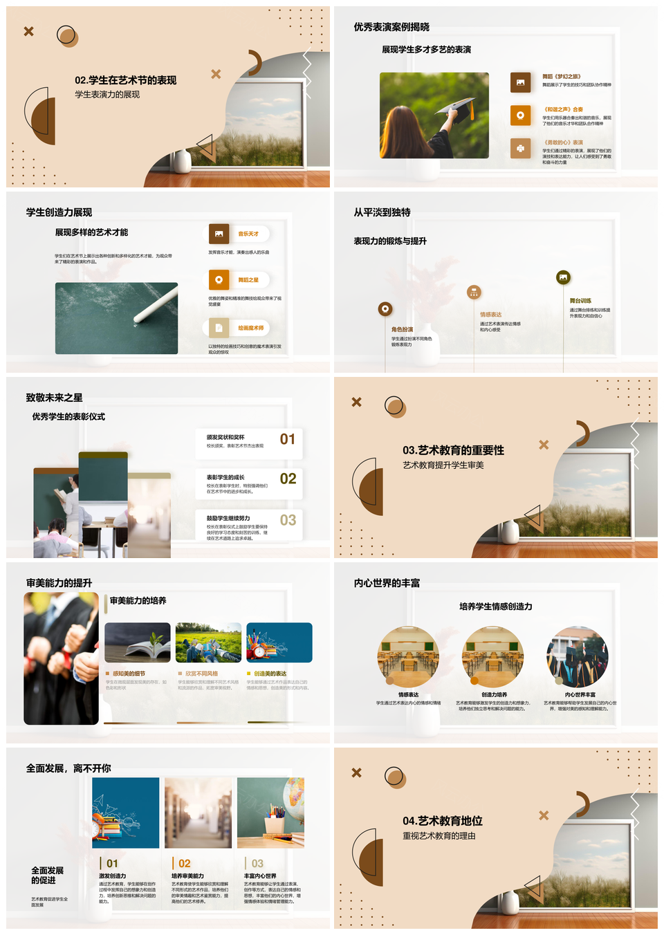 这是一张艺术教育校园艺术节助学生创美全面发展PPT模板,包含艺术教育、校园艺术节、学生、创美、全面发展等主题内容,也可用作艺术教育校园艺术节助学生创美、艺术教育校园艺术节助学生、艺术教育校园艺术节创美、校园艺术节助学生创美、艺术教育助学生创美全面发展、校园艺术节助学生创美、艺术教育校园艺术节、艺术节助学生创美全面发展、艺术教育助学生创美、校园助学生创美全面发展、艺术教育创美全面发展、艺术节助学生创美、助学生创美全面发展、艺术教育校园艺术、校园艺术节助学生等PPT场景使用。 风云办公提供的艺术教育校园艺术节助学生创美全面发展PPT模板,下载格式为pptx,一共27页,作品中文字及图均可以修改和编辑,图片更改请在作品中右键图片并更换,文字修改请直接点击文字进行修改。