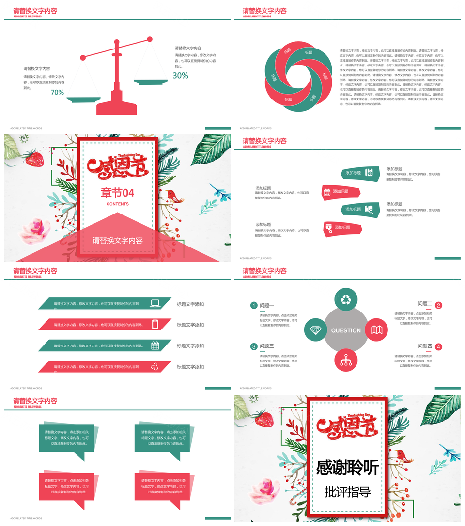 红色花卉浓情感恩感谢有你感恩节活动宣传PPT模板