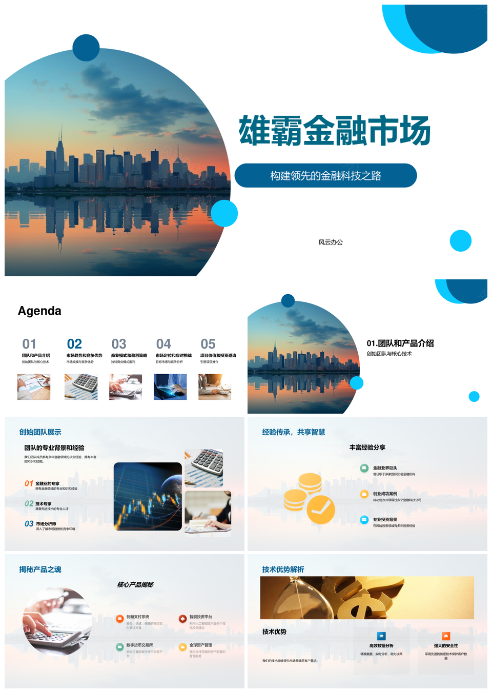雄霸金融市场科技团队产品规模优势模式盈利摩天大楼PPT模板推荐