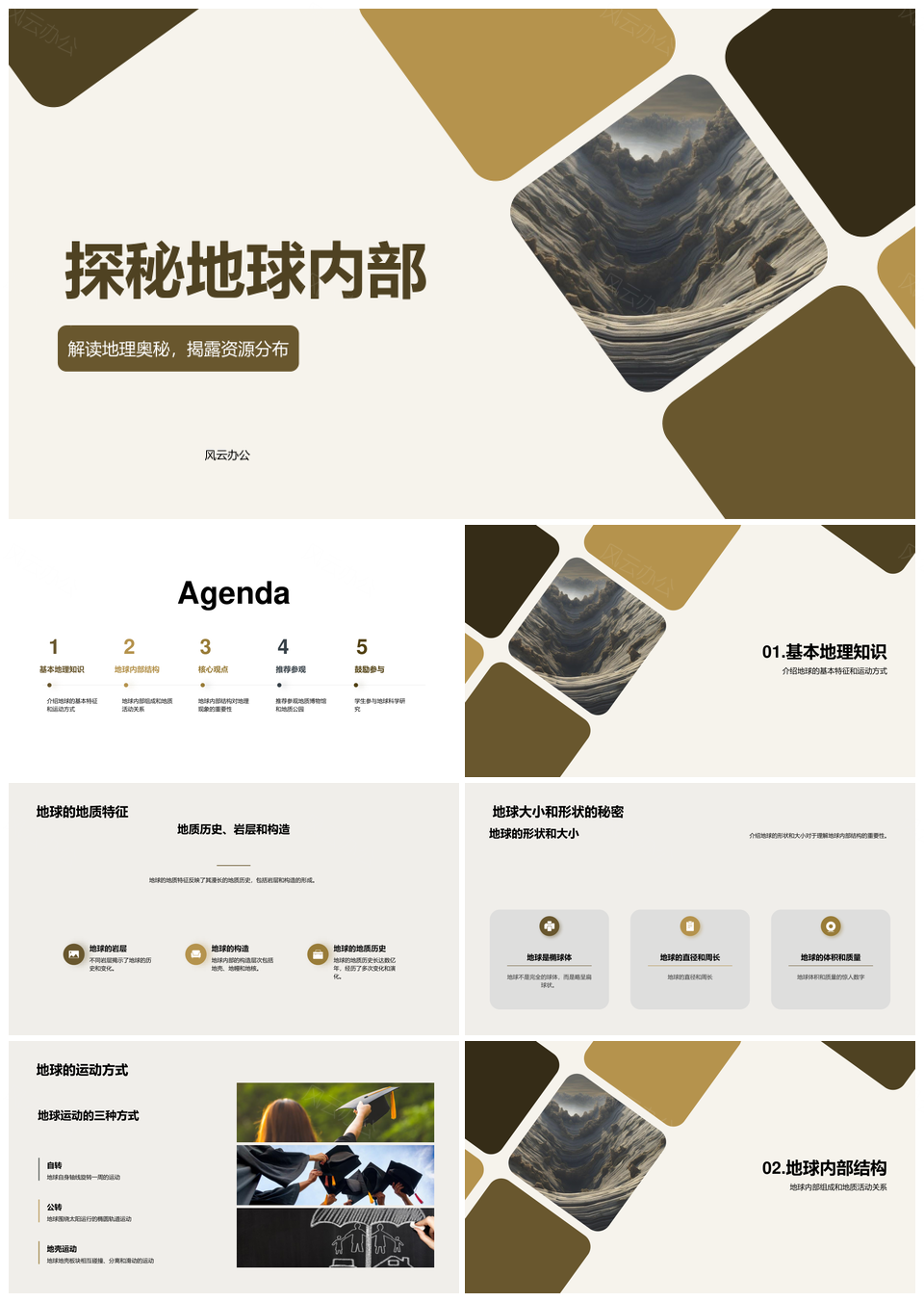 风云办公提供的地球内部构造层次形态及运动揭秘PPT模板,下载格式为pptx,一共21页,作品中文字及图均可以修改和编辑,图片更改请在作品中右键图片并更换,文字修改请直接点击文字进行修改。