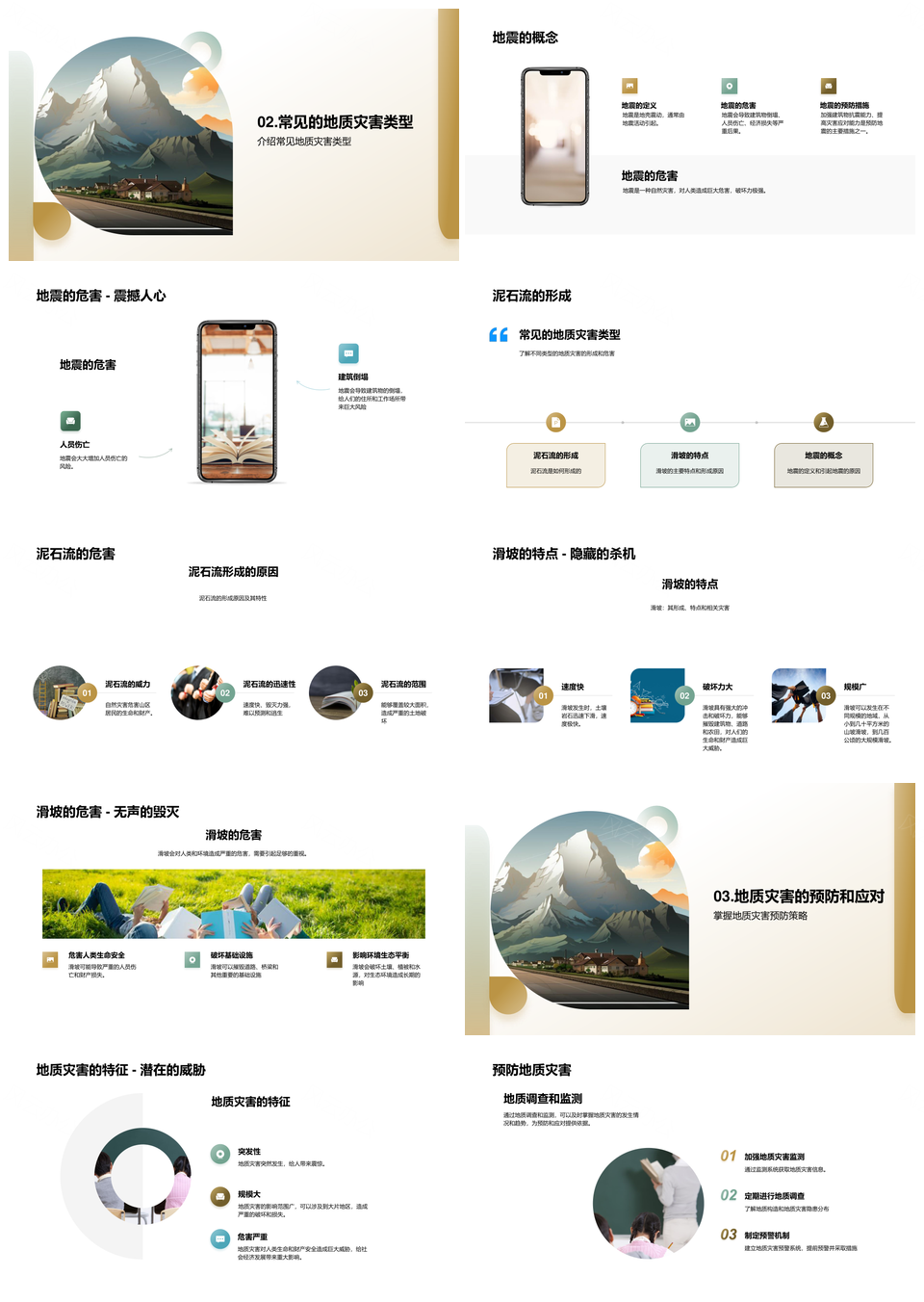 这是一张地质灾害防灾应对生命安全解析地震泥石流滑坡山脉PPT模板,包含地质灾害、防灾、应对、生命安全、解析、地震、泥石流、滑坡、山脉等主题内容,也可用作地质灾害防灾应对地震、防灾应对地震泥石流、应对地震泥石流滑坡、地震泥石流滑坡山脉、地质灾害防灾应对、防灾应对生命安全、应对生命安全解析、生命安全解析地震、解析地震泥石流、地震泥石流滑坡、泥石流滑坡山脉、地质灾害防灾、防灾应对、地震泥石流、泥石流滑坡等PPT场景使用。 风云办公提供的地质灾害防灾应对生命安全解析地震泥石流滑坡山脉PPT模板,下载格式为pptx,一共25页,作品中文字及图均可以修改和编辑,图片更改请在作品中右键图片并更换,文字修改请直接点击文字进行修改。