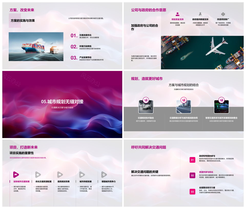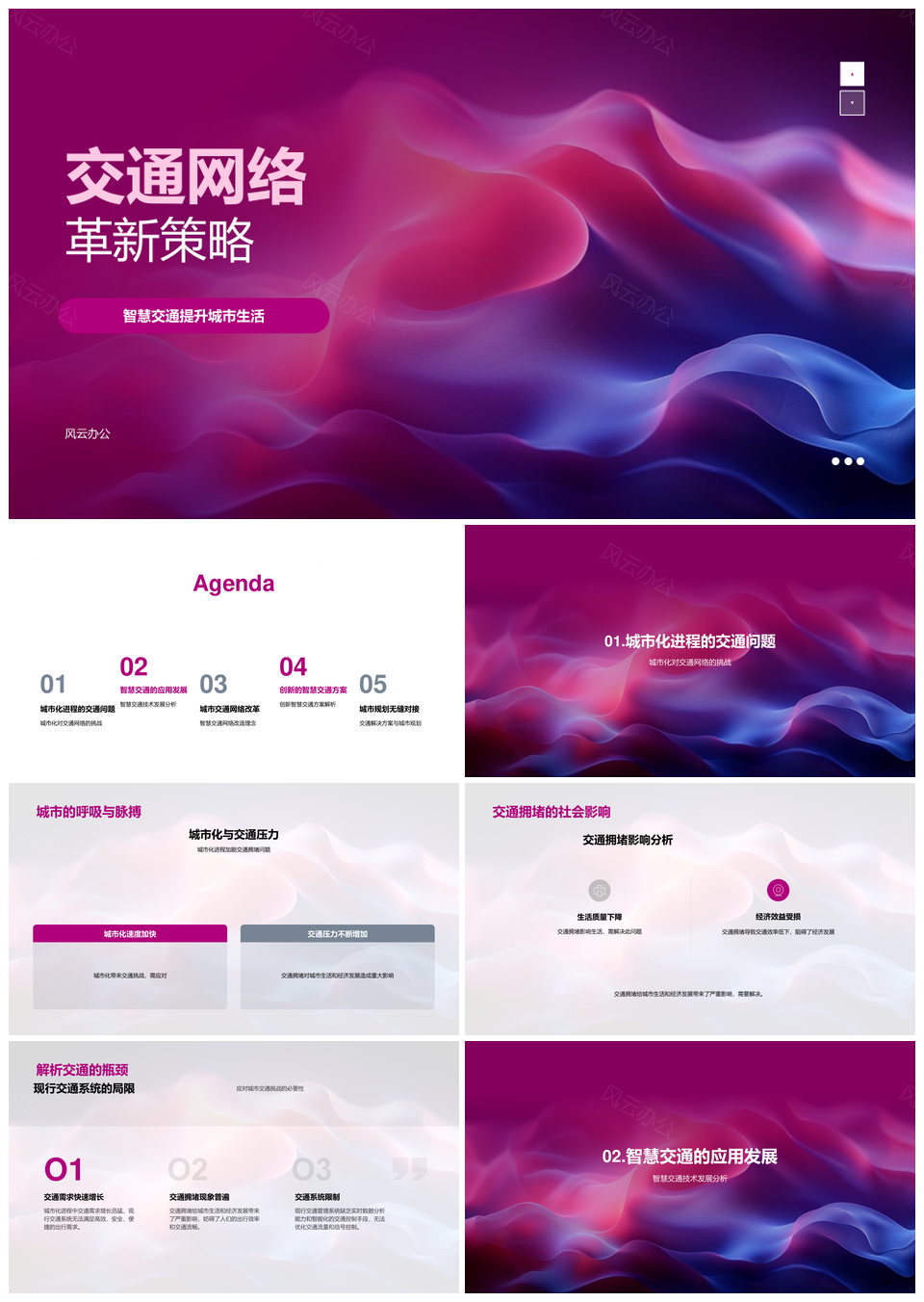 风云办公提供的智慧城市交通网络改革疏堵提效策略PPT模板,下载格式为pptx,一共24页,作品中文字及图均可以修改和编辑,图片更改请在作品中右键图片并更换,文字修改请直接点击文字进行修改。