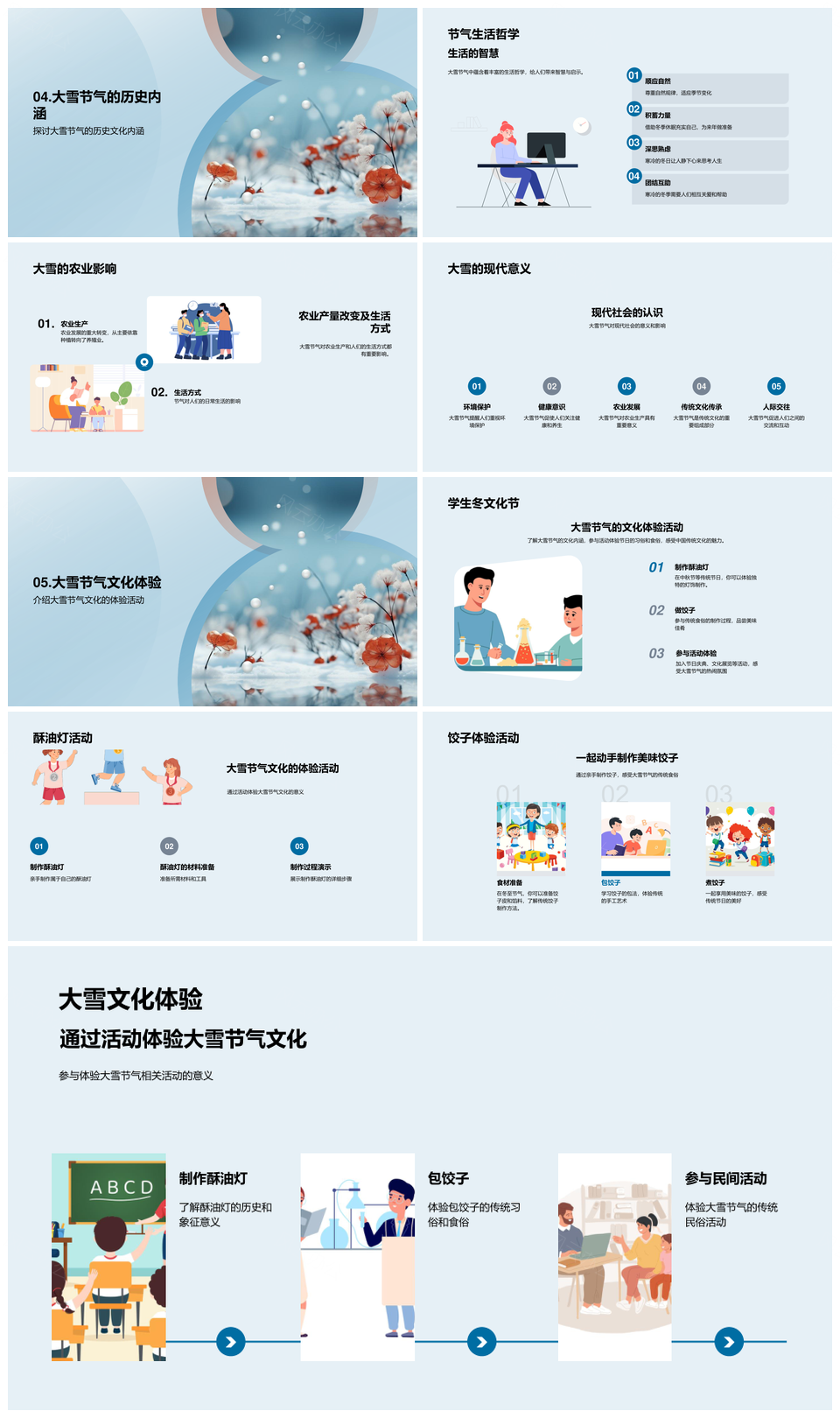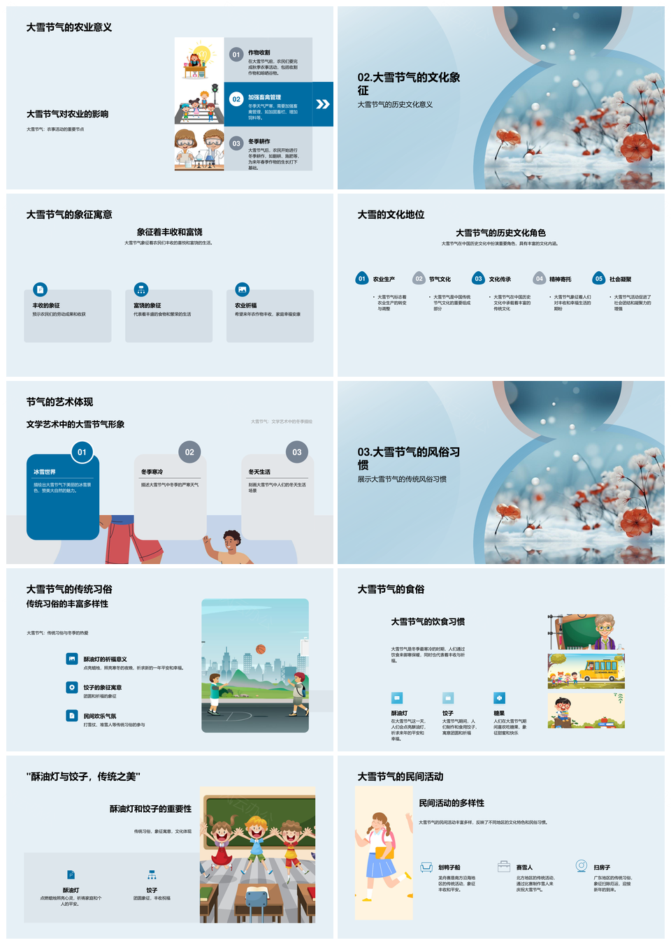 这是一张大雪节气习俗历法天文农事文化食俗雪花历史PPT模板,包含大雪节气、习俗、历法、天文、农事、文化、食俗、雪花、历史等主题内容,也可用作大雪节气习俗历法、节气习俗历法天文、习俗历法天文农事、历法天文农事文化、天文农事文化食俗、农事文化食俗雪花、文化食俗雪花历史、大雪节气农事文化、大雪历法农事历史、习俗天文食俗历史、节气习俗文化食俗、习俗历法雪花历史、大雪农事文化食俗、历法文化食俗历史、大雪习俗天文农事等PPT场景使用。 风云办公提供的大雪节气习俗历法天文农事文化食俗雪花历史PPT模板,下载格式为pptx,一共27页,作品中文字及图均可以修改和编辑,图片更改请在作品中右键图片并更换,文字修改请直接点击文字进行修改。