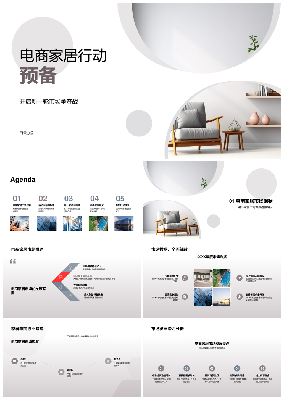风云办公提供的电商家居市场争夺战趋势数据分析预测PPT模板,下载格式为pptx,一共28页,作品中文字及图均可以修改和编辑,图片更改请在作品中右键图片并更换,文字修改请直接点击文字进行修改。