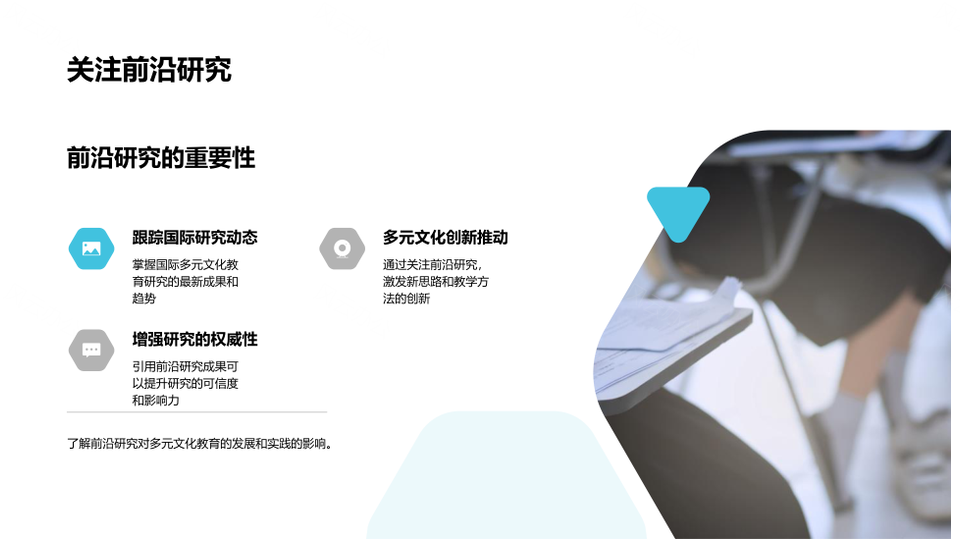 这是一张多元跨文化教育理论实践创新研究PPT模板,包含多元、跨文化、教育、理论、实践、创新、研究等主题内容,也可用作多元跨文化教育理论、跨文化教育理论实践、教育理论实践创新、理论实践创新研究、多元跨文化教育、跨文化教育理论、教育理论实践、理论实践创新、实践创新研究、多元跨文化、跨文化教育、教育理论、理论实践、实践创新、创新研究等PPT场景使用。
