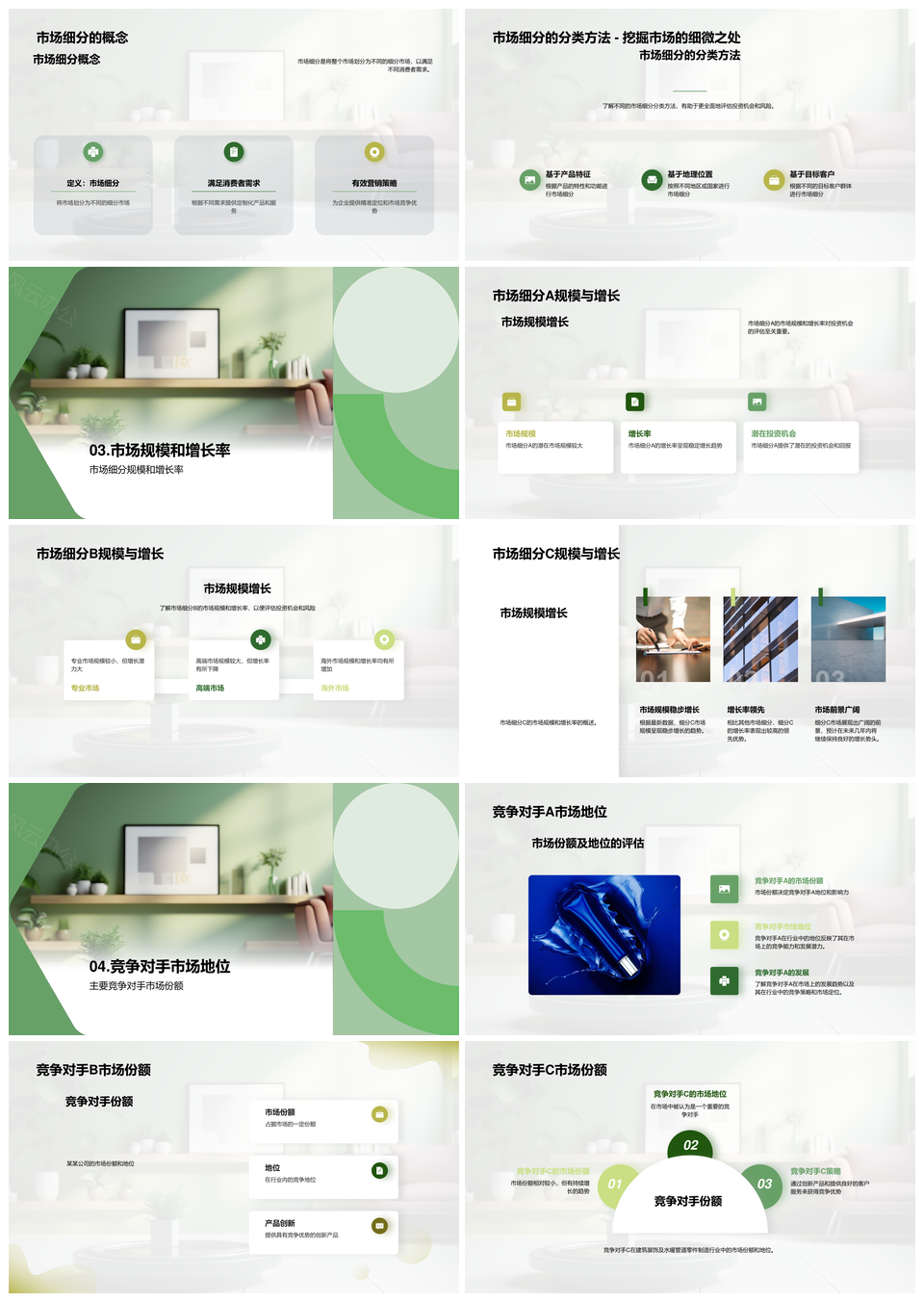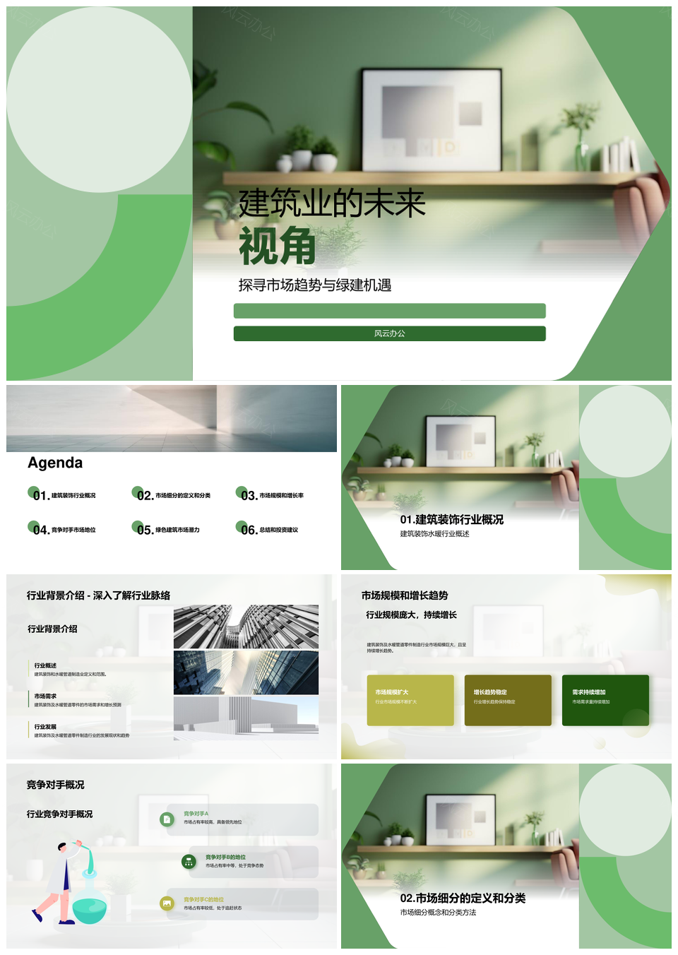 这是一张绿色智能建筑装饰水暖市场细分趋势竞争PPT模板,包含绿色、智能建筑、装饰、水暖、市场、细分、趋势、竞争等主题内容,也可用作绿色智能建筑装饰、智能建筑装饰水暖、建筑装饰水暖市场细分、装饰水暖市场细分趋势、水暖市场细分趋势竞争、绿色智能建筑、智能建筑装饰、建筑装饰水暖、装饰水暖市场细分、水暖市场细分趋势、绿色智能、智能建筑、建筑装饰、装饰水暖、市场细分趋势等PPT场景使用。 风云办公提供的绿色智能建筑装饰水暖市场细分趋势竞争PPT模板,下载格式为pptx,一共29页,作品中文字及图均可以修改和编辑,图片更改请在作品中右键图片并更换,文字修改请直接点击文字进行修改。