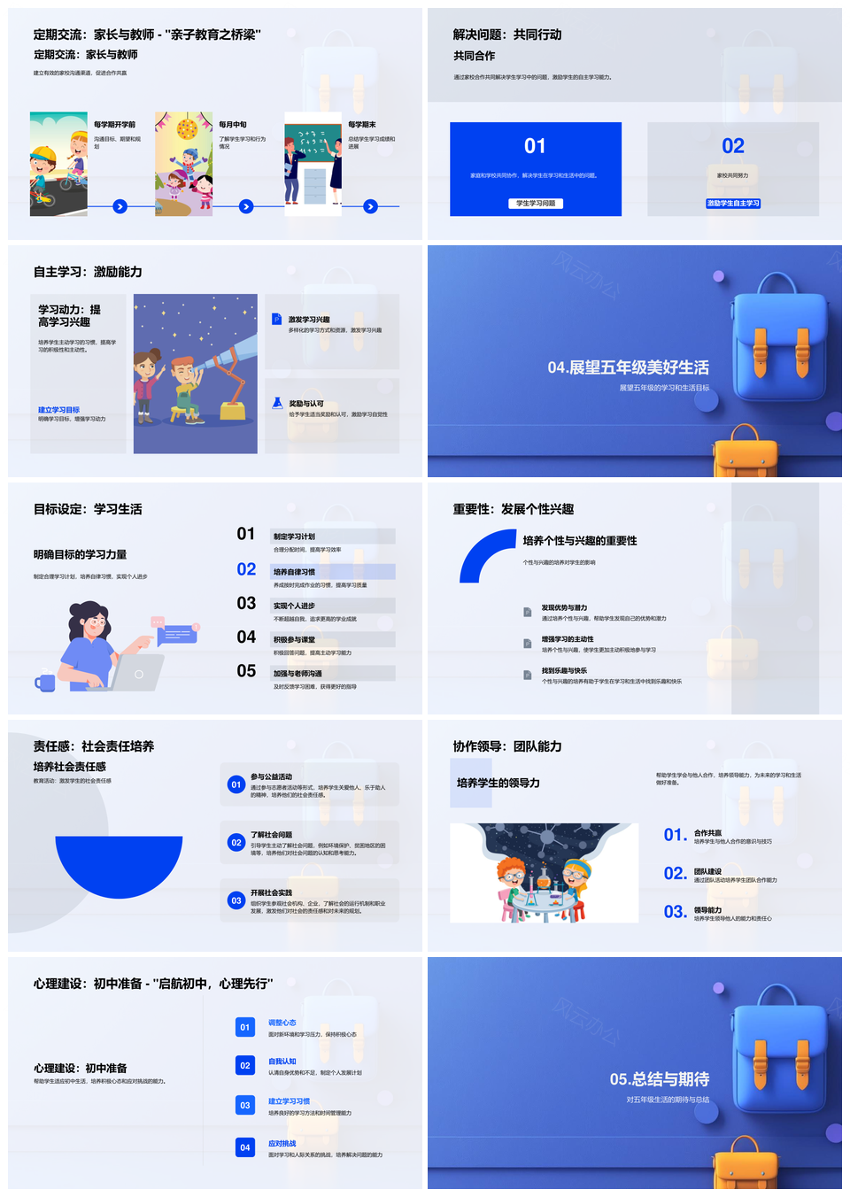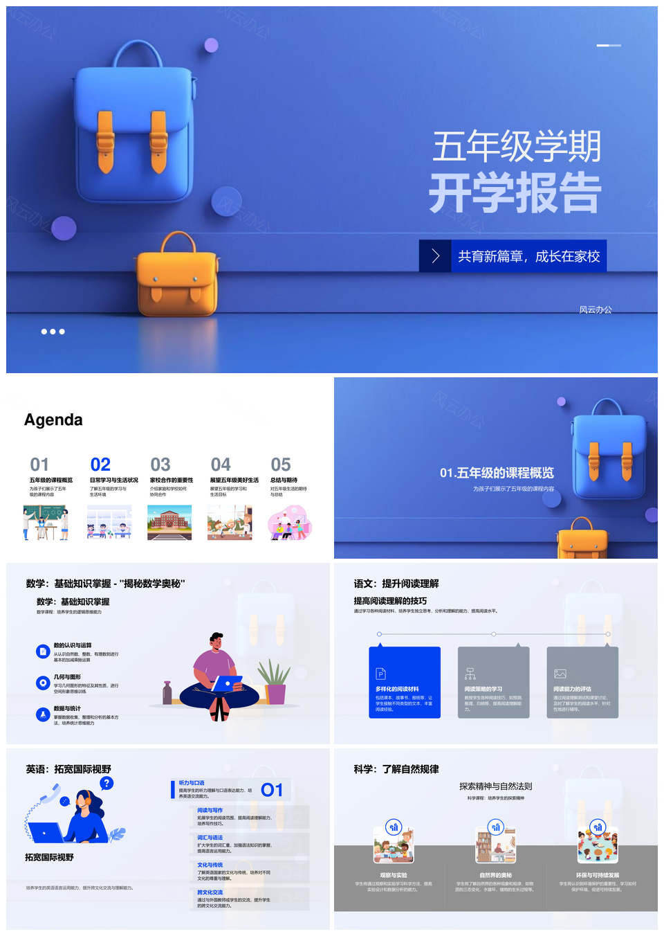 这是一张五年级开学家长会语数英科体美教育汇报PPT模板,包含五年级、开学、家长会、语数英、科体美、教育、汇报等主题内容,也可用作五年级开学家长会教育汇报、五年级开学家长会教育、开学家长会教育汇报、五年级家长会教育汇报、五年级开学教育汇报、五年级开学家长会汇报、语数英科体美教育、数英科体美教育、英科体美教育汇报、科体美教育汇报、语数英科体美、数英科体美、英科体美教育、科体美教育、五年级教育汇报等PPT场景使用。 风云办公提供的五年级开学家长会语数英科体美教育汇报PPT模板,下载格式为pptx,一共33页,作品中文字及图均可以修改和编辑,图片更改请在作品中右键图片并更换,文字修改请直接点击文字进行修改。