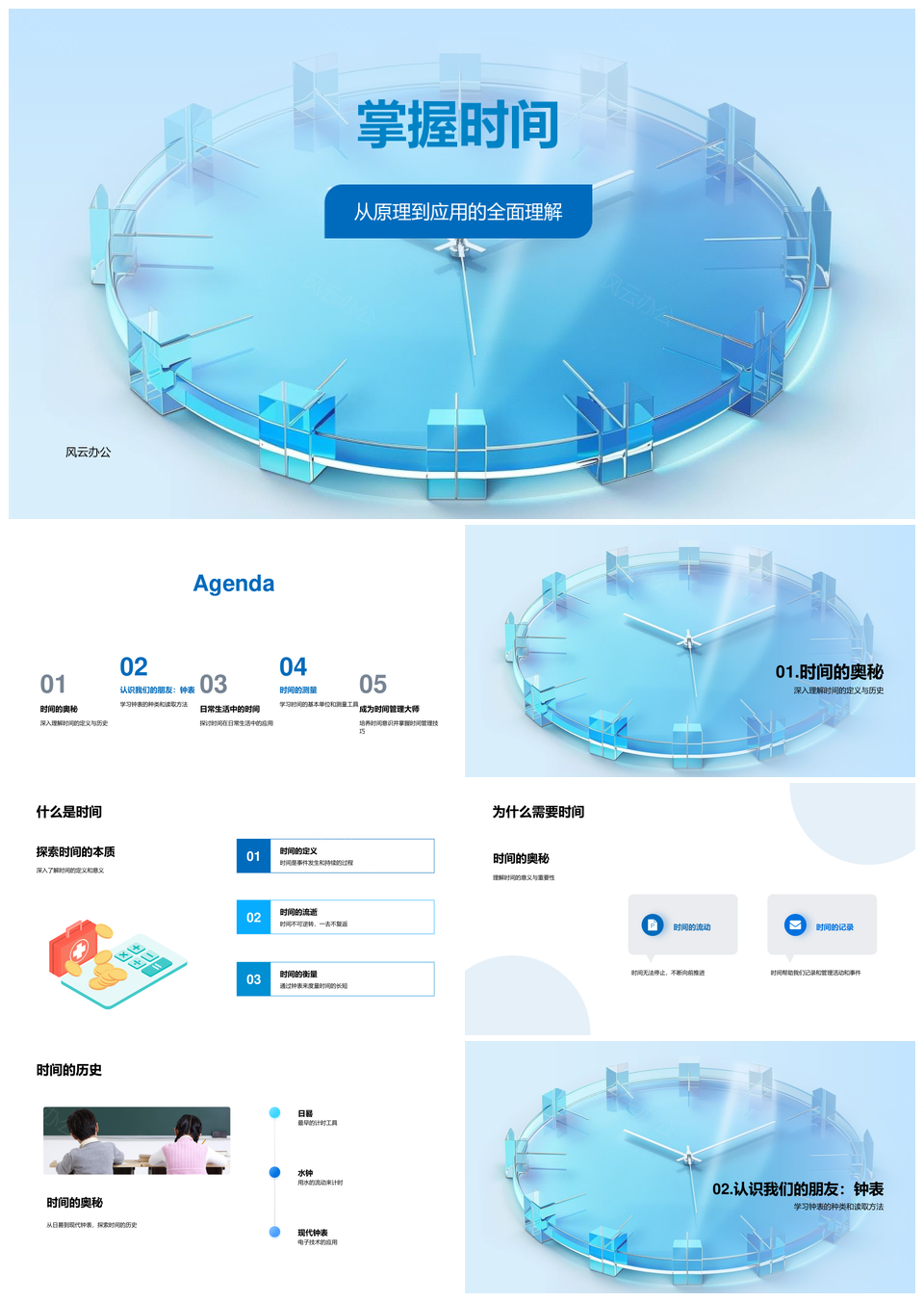 闪亮时间原理应用历史钟表沙漏制作日程单位PPT模板推荐