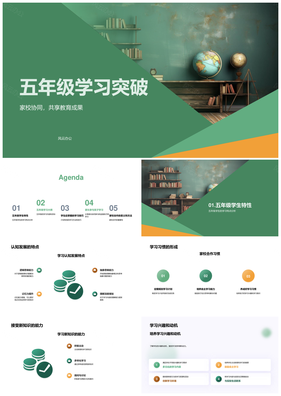 风云办公提供的五年级家校协同助力认知习惯学科突破PPT模板,下载格式为pptx,一共28页,作品中文字及图均可以修改和编辑,图片更改请在作品中右键图片并更换,文字修改请直接点击文字进行修改。