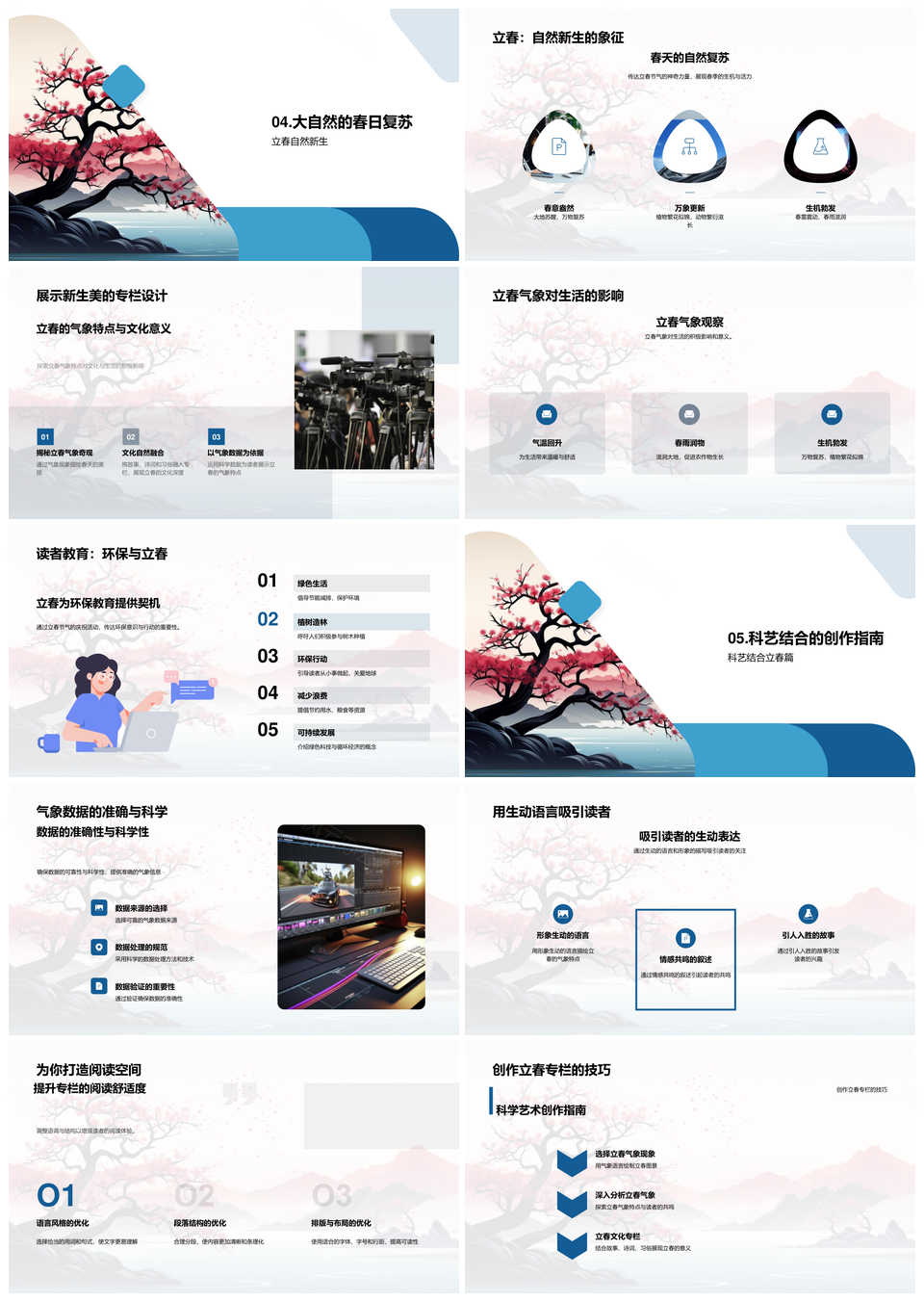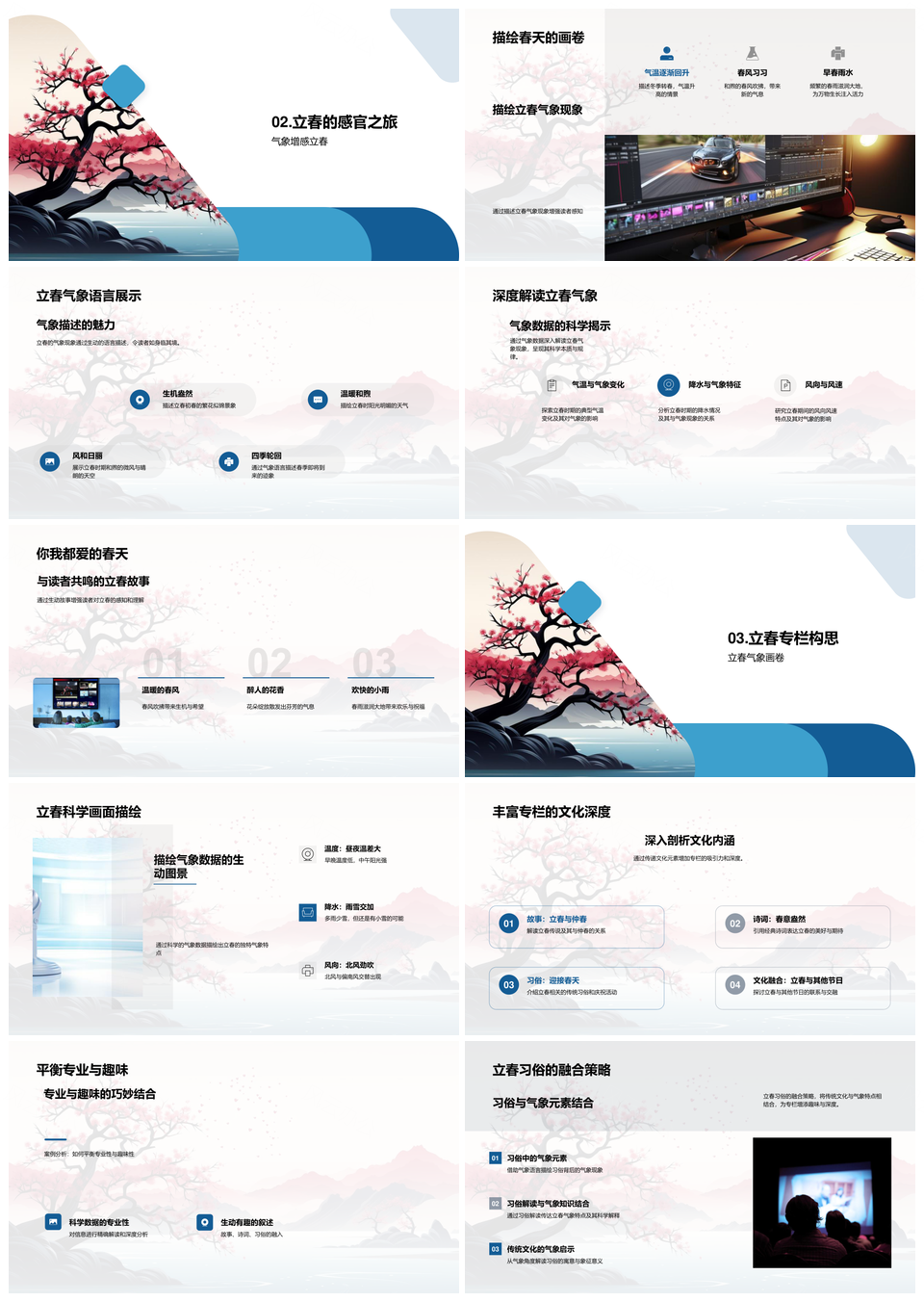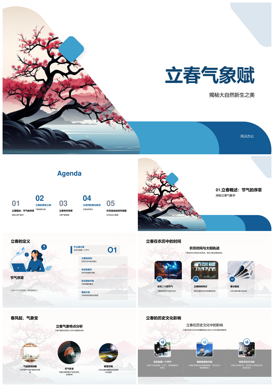 这是一张立春气象赋节气学家樱花新生美历史文化数据PPT模板,包含立春、气象、赋、节气学家、樱花、新生、美、历史文化、数据等主题内容,也可用作立春气象节气学家樱花、气象节气学家樱花新生、节气学家樱花新生历史文化、樱花新生历史文化数据、立春气象节气学家、气象节气学家樱花、节气学家樱花新生、樱花新生历史文化、新生历史文化数据、立春气象、气象节气学家、节气学家樱花、樱花新生、新生历史文化、历史文化数据等PPT场景使用。 风云办公提供的立春气象赋节气学家樱花新生美历史文化数据PPT模板,下载格式为pptx,一共28页,作品中文字及图均可以修改和编辑,图片更改请在作品中右键图片并更换,文字修改请直接点击文字进行修改。