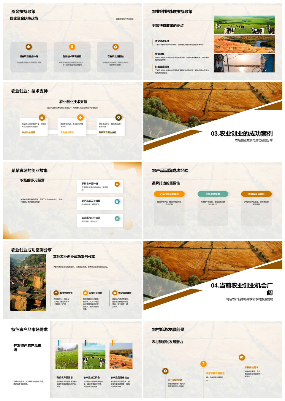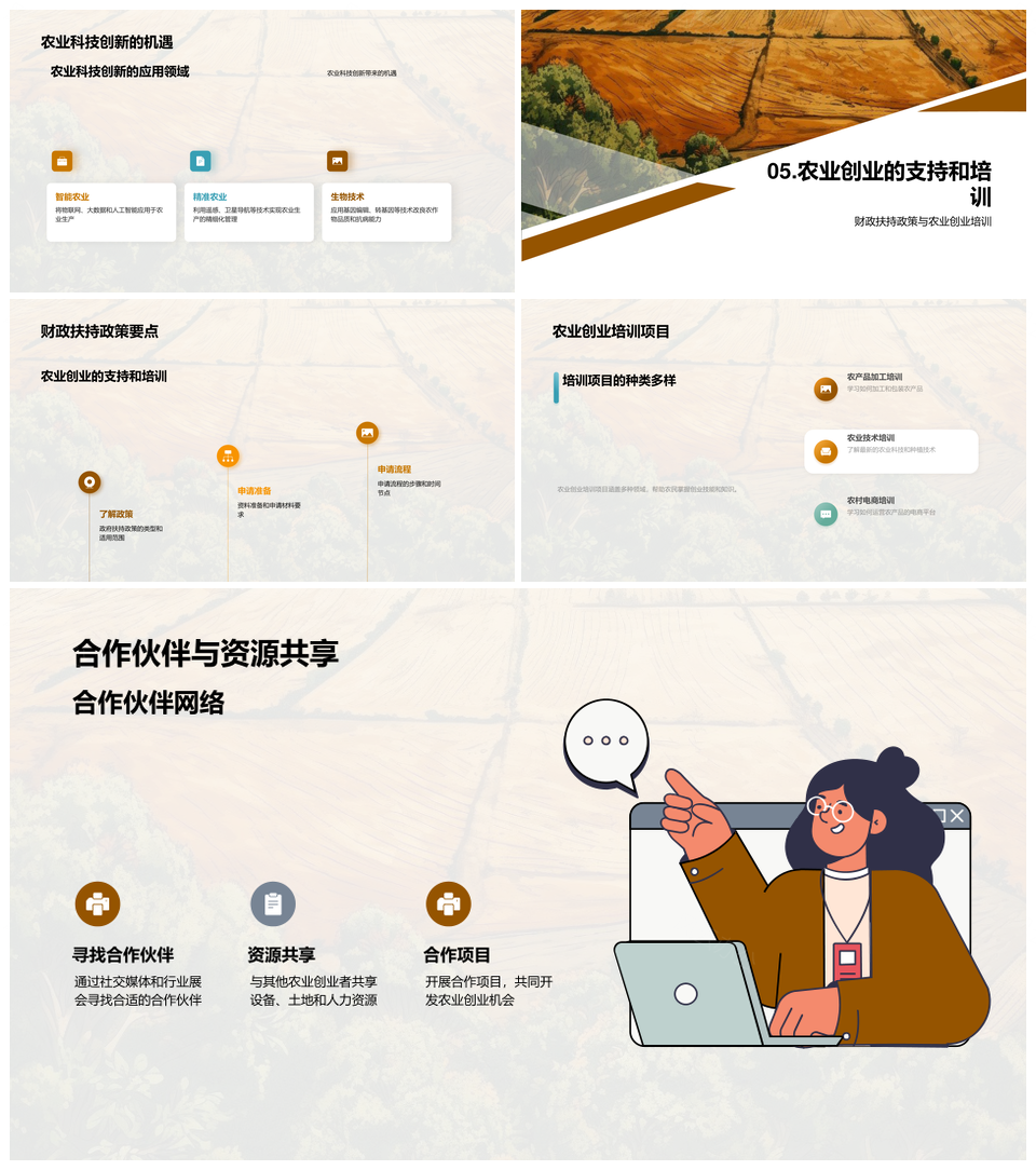 这是一张农业创业政策资金支持农民农林牧渔市场盈利PPT模板,包含农业、创业政策、资金、支持、农民、农林牧渔、市场、盈利等主题内容,也可用作农业创业政策资金、创业政策资金支持、政策资金支持农民、资金支持农民农林牧渔、支持农民农林牧渔市场、农民农林牧渔市场盈利、政策支持农林牧渔、农林牧渔市场盈利、农业政策资金支持、农民市场盈利、农业创业支持农民、政策资金农民市场、创业农民市场盈利、资金农林牧渔盈利、政策市场盈利等PPT场景使用。 风云办公提供的农业创业政策资金支持农民农林牧渔市场盈利PPT模板,下载格式为pptx,一共23页,作品中文字及图均可以修改和编辑,图片更改请在作品中右键图片并更换,文字修改请直接点击文字进行修改。