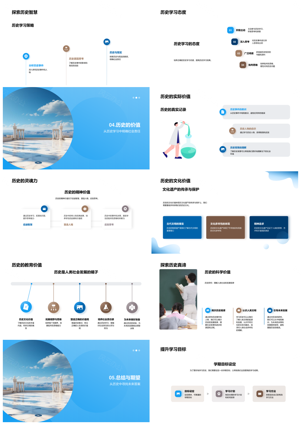 这款商务风模板以古典蓝为主色调,融入水墨与手绘元素,兼顾专业度与视觉层次感。整套模板采用模块化结构布局,图表与文字版式预设逻辑严谨,便于快速梳理内容框架。复古纹理底纹与线条细节处理,巧妙平衡年代感与现代商务场景需求,中国风插画元素可单独隐藏或调整透明度。所有文字段落、图标、配色方案均支持深度编辑,用户可灵活调整版式比例,无需设计基础即可适配不同汇报场景。适合企业年报、学术分享、文化项目等需要展现沉稳气质的场合,通过结构化视觉语言提升内容呈现的专业度。