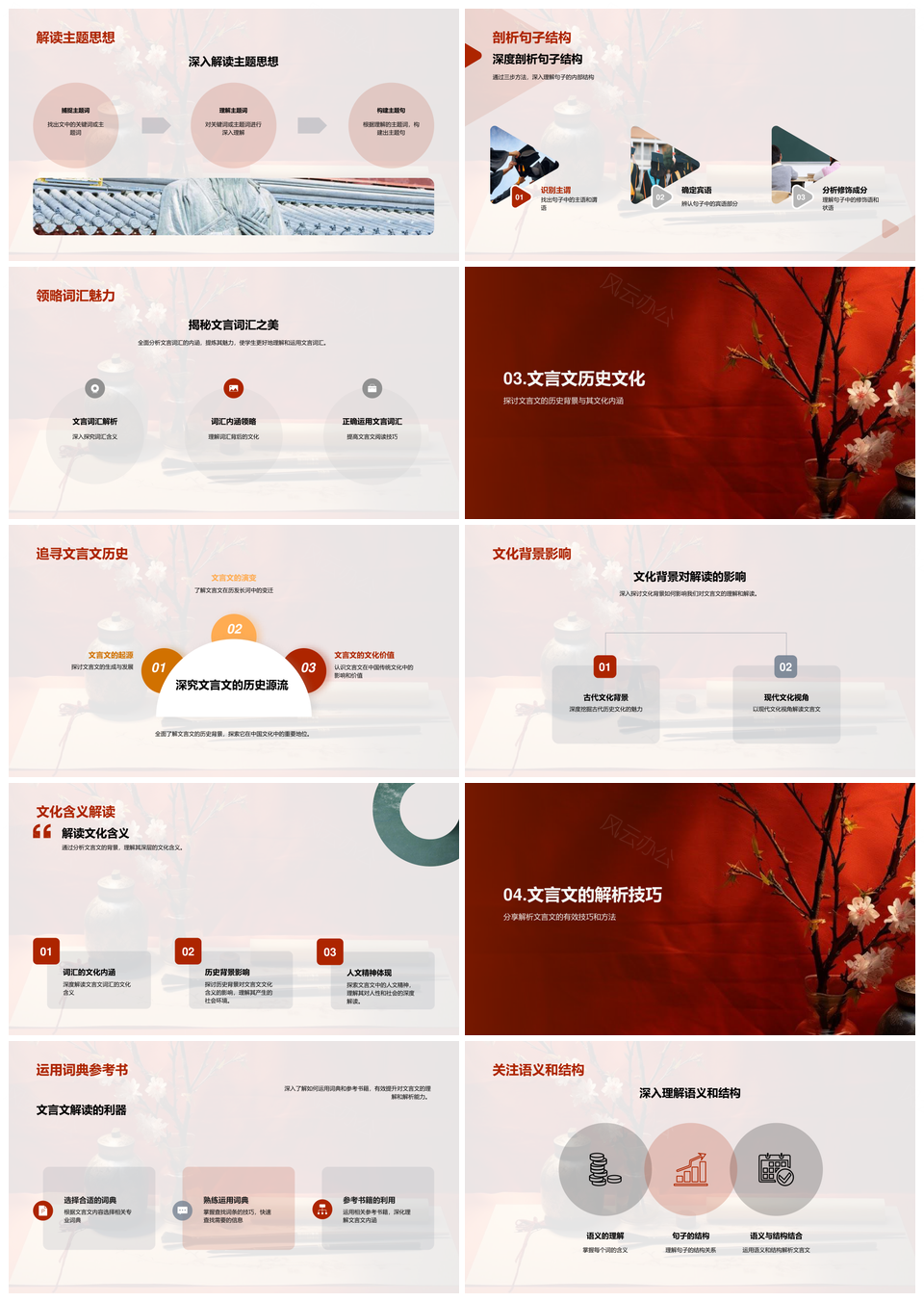 这是一张文言文解析语法词汇主题结构历史文化卷轴PPT模板,包含文言文、解析、语法、词汇、主题、结构、历史文化、卷轴等主题内容,也可用作文言文解析语法词汇、文言文解析主题结构、文言文语法词汇主题、解析语法词汇主题、解析语法主题结构、解析词汇主题结构、语法词汇主题结构、词汇主题结构历史、主题结构历史文化、结构历史文化卷轴、文言文解析语法、文言文解析主题、文言文语法词汇、解析语法词汇、解析主题结构、语法词汇主题等PPT场景使用。 风云办公提供的文言文解析语法词汇主题结构历史文化卷轴PPT模板,下载格式为pptx,一共23页,作品中文字及图均可以修改和编辑,图片更改请在作品中右键图片并更换,文字修改请直接点击文字进行修改。