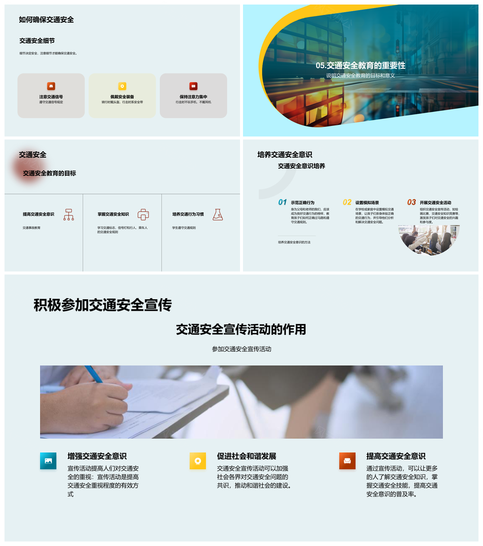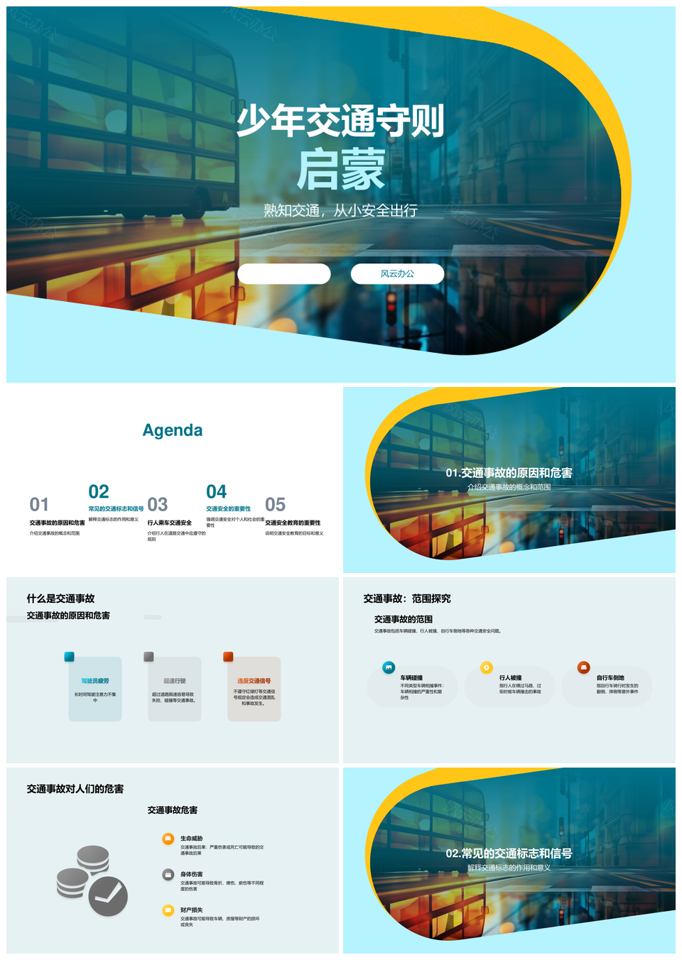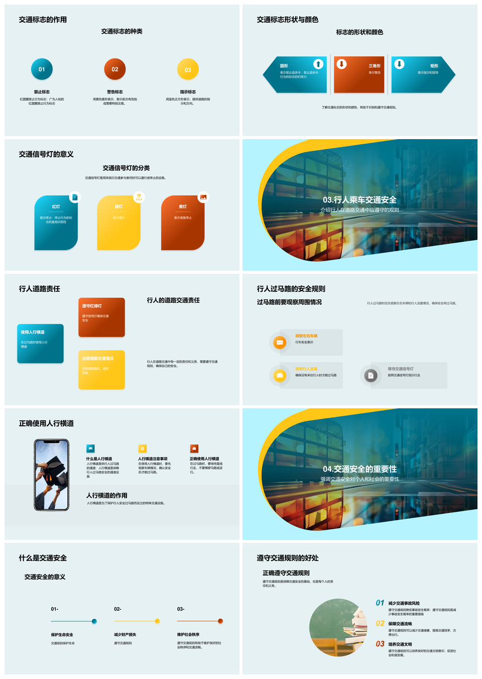 这是一张小学生交通安全教育交警标志信号灯行人乘车PPT模板,包含小学生、交通安全教育、交警、标志、信号灯、行人、乘车等主题内容,也可用作小学生交通安全教育交警标志、交通安全教育交警标志信号灯、交警标志信号灯行人、信号灯行人乘车交通安全、小学生交通安全教育、交通安全教育交警、交警标志信号灯、信号灯行人乘车、行人乘车交通安全、教育交警标志、小学生乘车行人、小学生教育信号灯、标志信号灯行人、小学生交通安全、交通安全教育、教育交警、交警标志、信号灯行人、行人乘车、乘车标志等PPT场景使用。 风云办公提供的小学生交通安全教育交警标志信号灯行人乘车PPT模板,下载格式为pptx,一共23页,作品中文字及图均可以修改和编辑,图片更改请在作品中右键图片并更换,文字修改请直接点击文字进行修改。