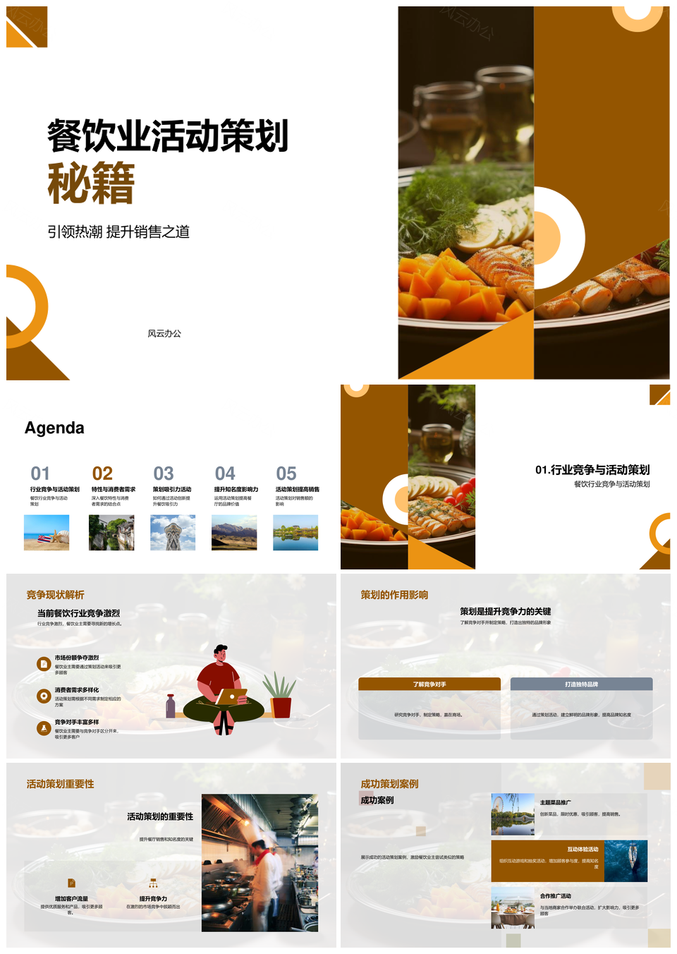 餐饮活动策划创新提升销售推广特色主题晚餐PPT模板推荐