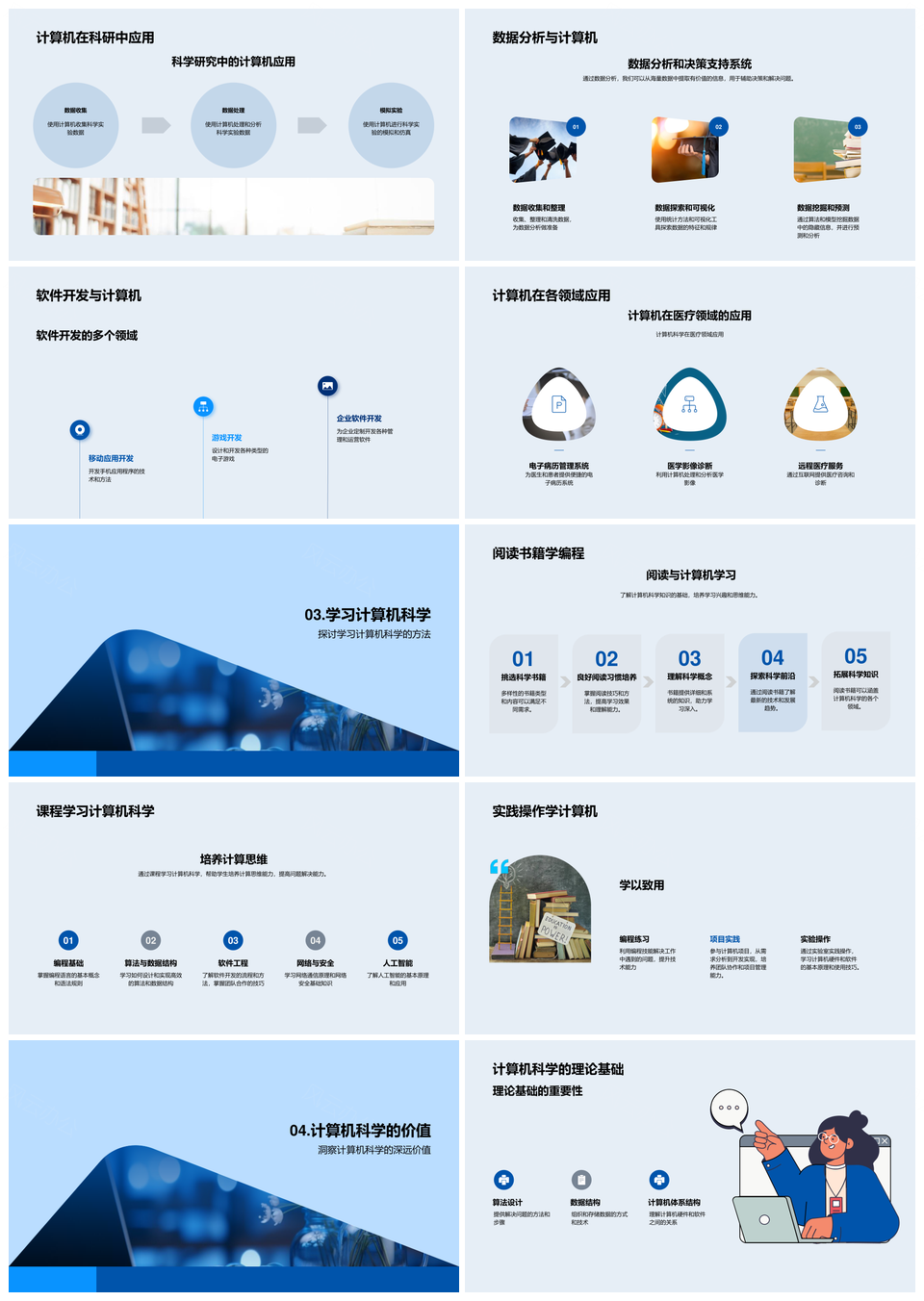 风云办公提供的计算机科学理论实践与应用探索PPT模板,下载格式为pptx,一共24页,作品中文字及图均可以修改和编辑,图片更改请在作品中右键图片并更换,文字修改请直接点击文字进行修改。