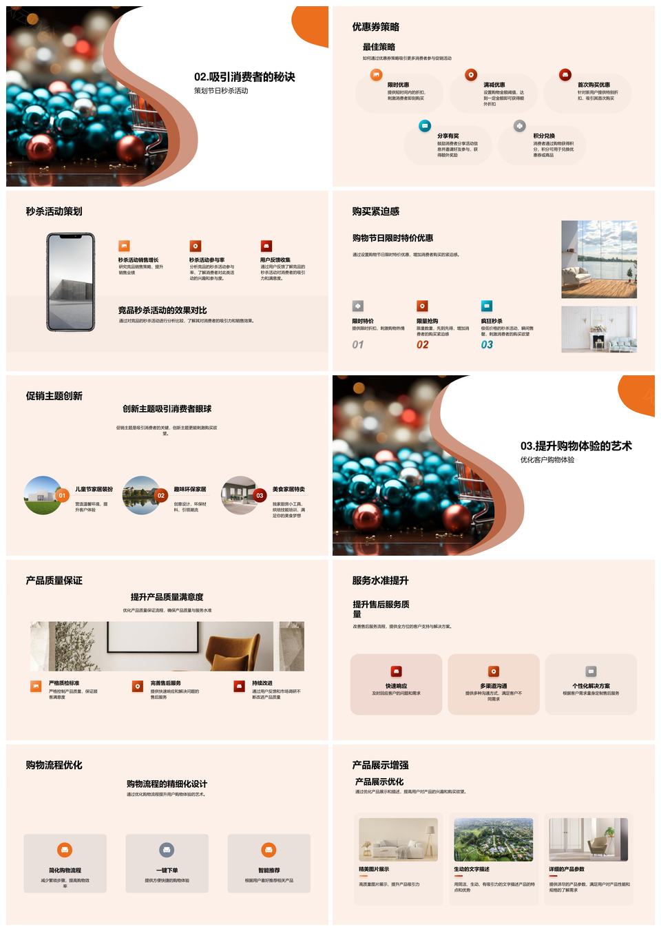 家居电商节日促销策略优惠券秒杀提升体验品质服务PPT模板推荐