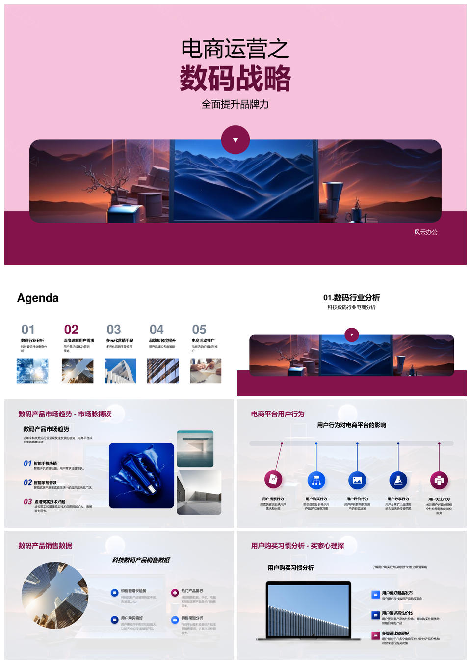 电商运营科技数码战略提升品牌力用户行为市场趋势PPT模板推荐