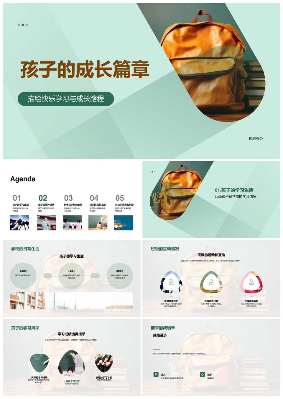 这是一张孩子成长学习课外活动学校背包成绩表现PPT模板,包含孩子、成长、学习、课外活动、学校、背包、成绩、表现等主题内容,也可用作孩子成长学习课外活动、成长学习课外活动学校、学习课外活动学校背包、课外活动学校背包成绩、学校背包成绩表现、孩子成长学习、成长学习课外活动、学习课外活动学校、课外活动学校背包、学校背包成绩表现、课外活动成绩表现、学校成绩表现、孩子成长课外活动、成长课外活动学校、孩子课外活动成绩等PPT场景使用。 风云办公提供的孩子成长学习课外活动学校背包成绩表现PPT模板,下载格式为pptx,一共33页,作品中文字及图均可以修改和编辑,图片更改请在作品中右键图片并更换,文字修改请直接点击文字进行修改。