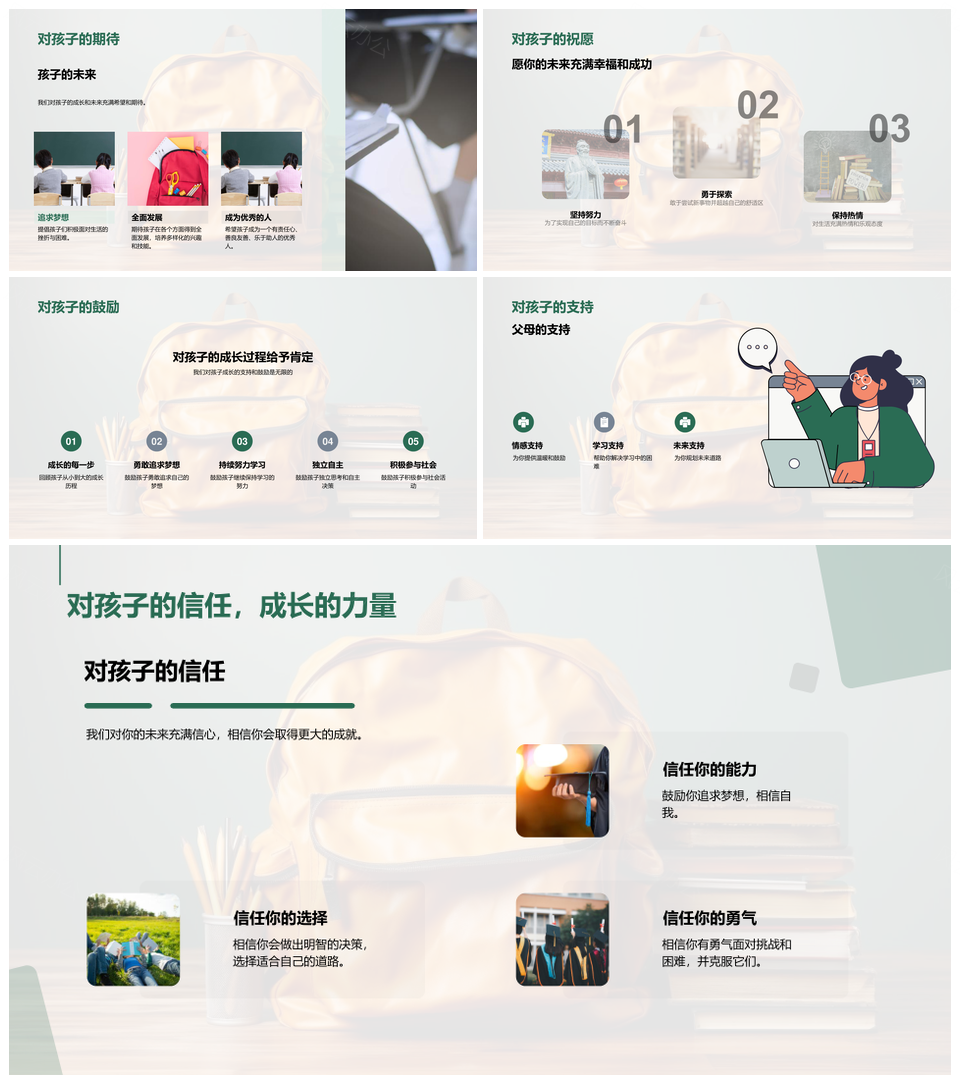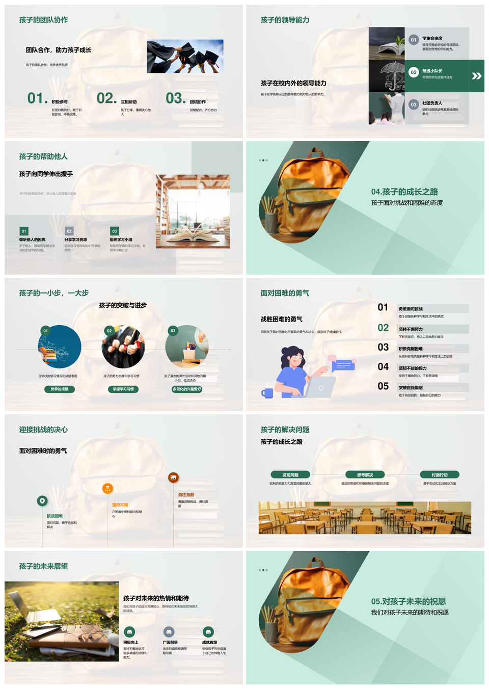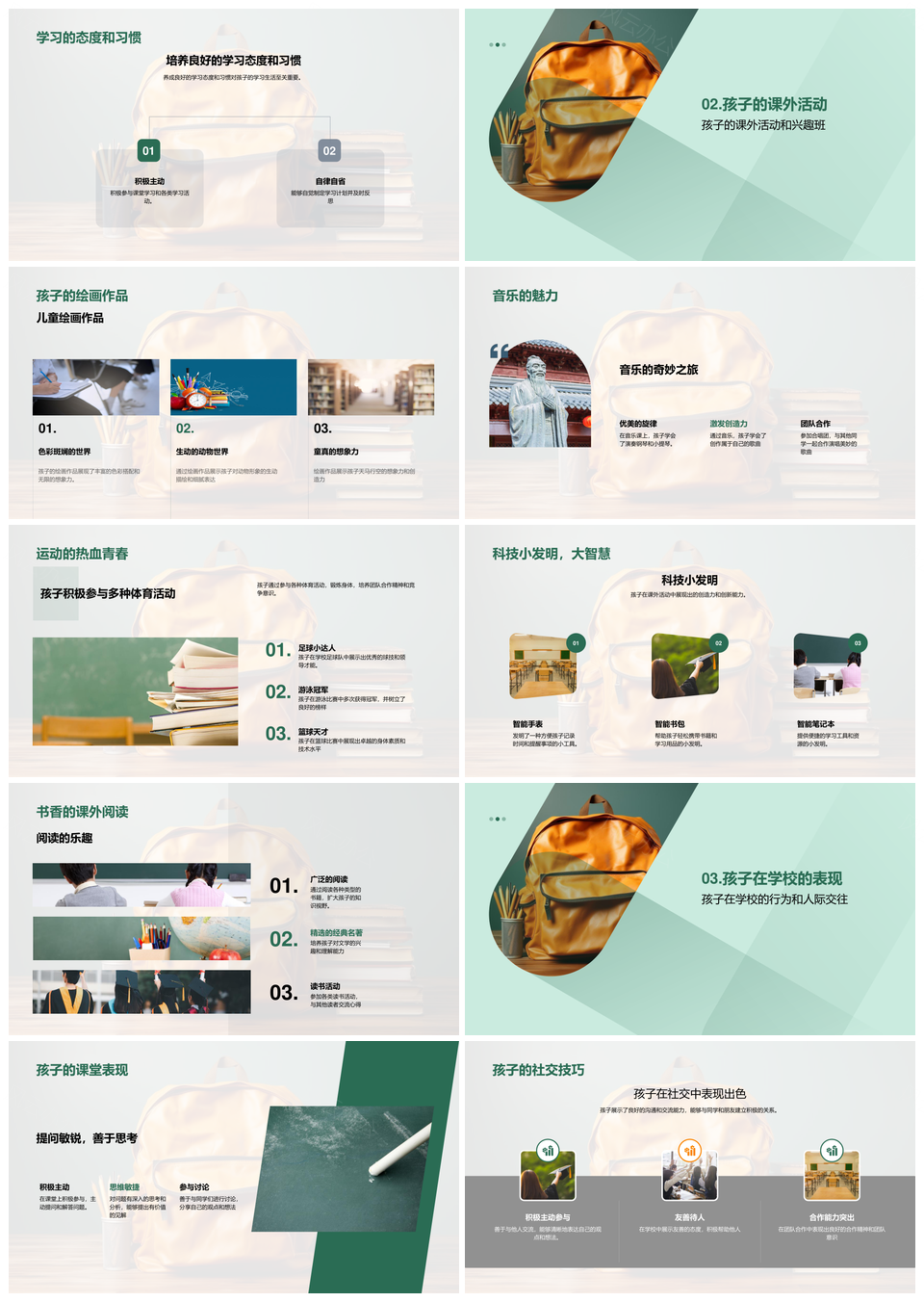孩子成长学习课外活动学校背包成绩表现PPT模板推荐