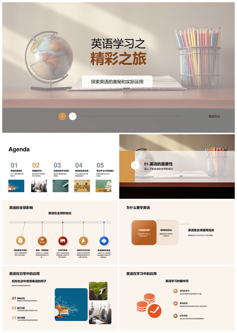风云办公提供的环球英语发音口语记忆计划之旅PPT模板,下载格式为pptx,一共29页,作品中文字及图均可以修改和编辑,图片更改请在作品中右键图片并更换,文字修改请直接点击文字进行修改。