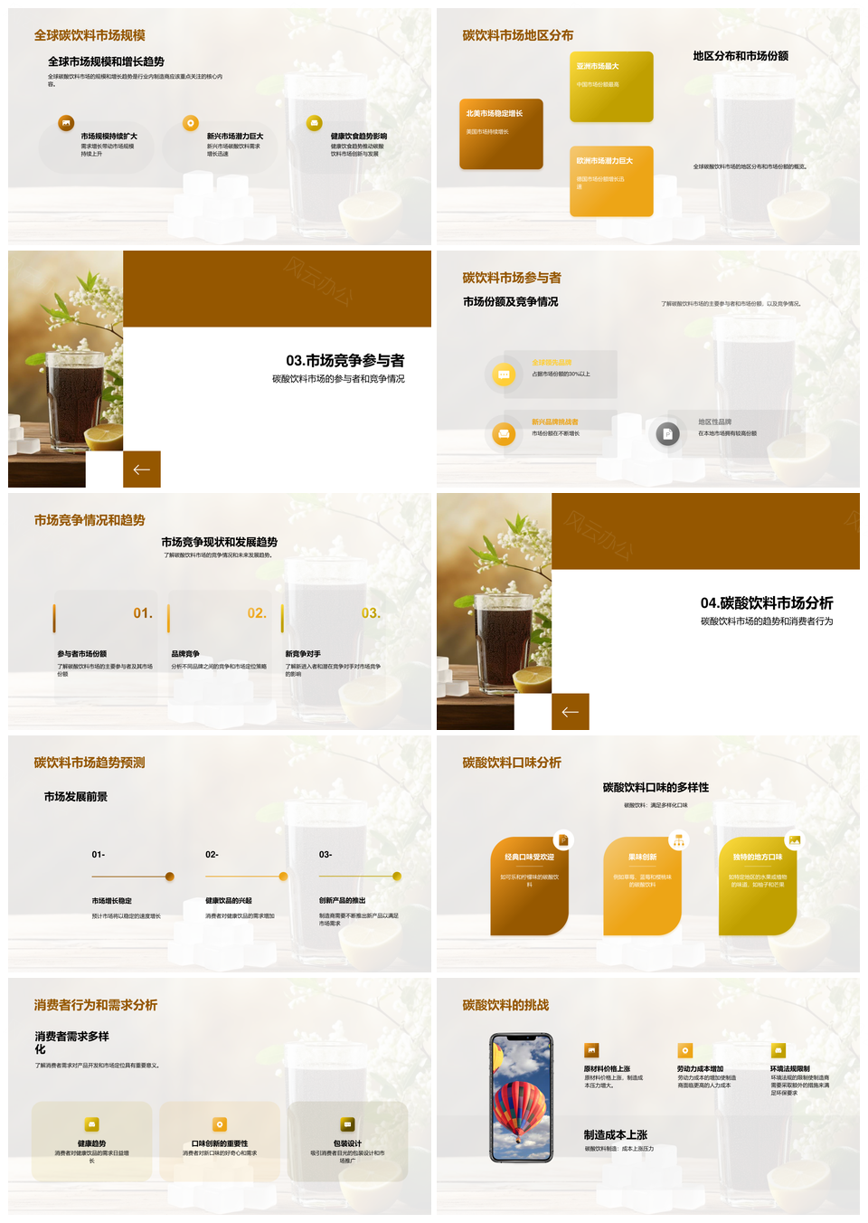 风云办公提供的碳酸饮料行业技术发展趋势及市场分析PPT模板,下载格式为pptx,一共24页,作品中文字及图均可以修改和编辑,图片更改请在作品中右键图片并更换,文字修改请直接点击文字进行修改。