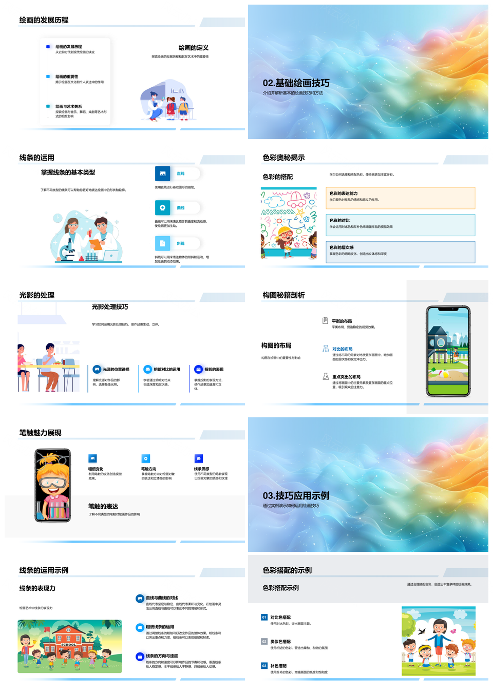 2025美术基础教学绘画技巧色彩构图光影立体知识PPT模板