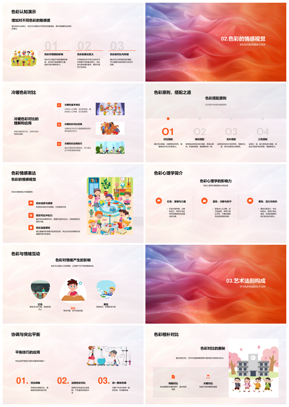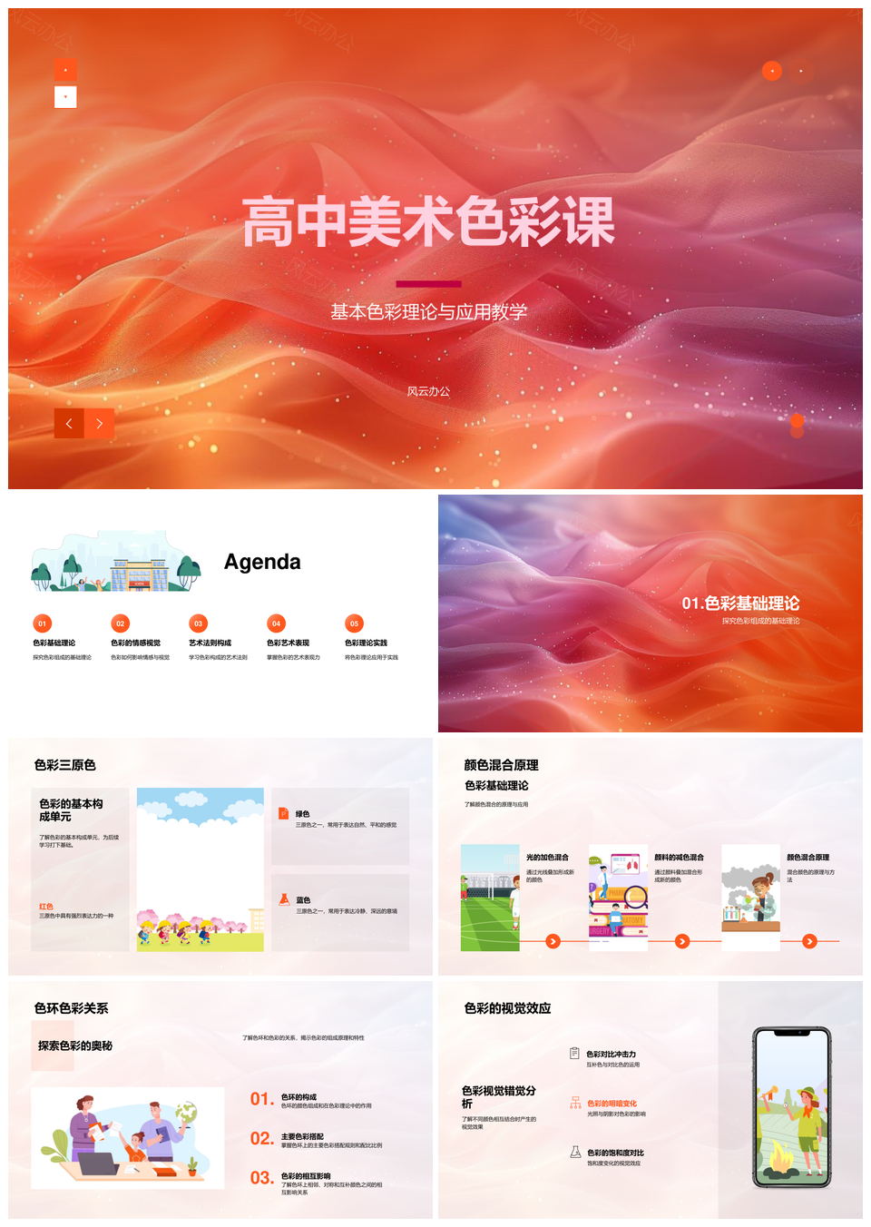 风云办公提供的高中美术色彩理论应用与心理搭配情感PPT模板,下载格式为pptx,一共33页,作品中文字及图均可以修改和编辑,图片更改请在作品中右键图片并更换,文字修改请直接点击文字进行修改。