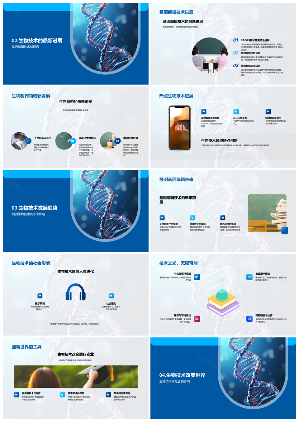 生物技术基因编辑制药研发教育社会影响应用PPT模板