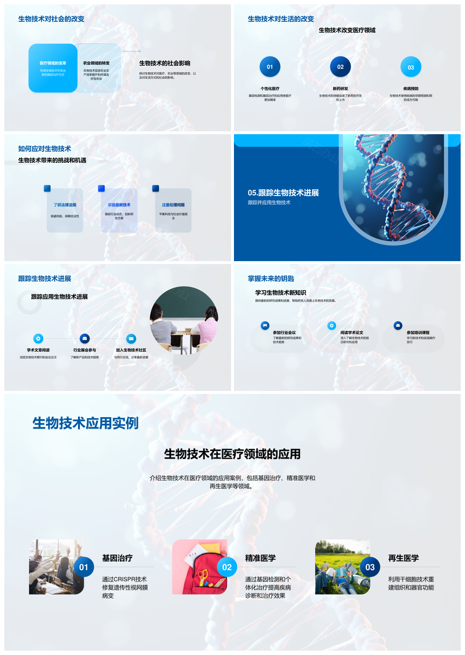 生物技术基因编辑制药研发教育社会影响应用PPT模板推荐