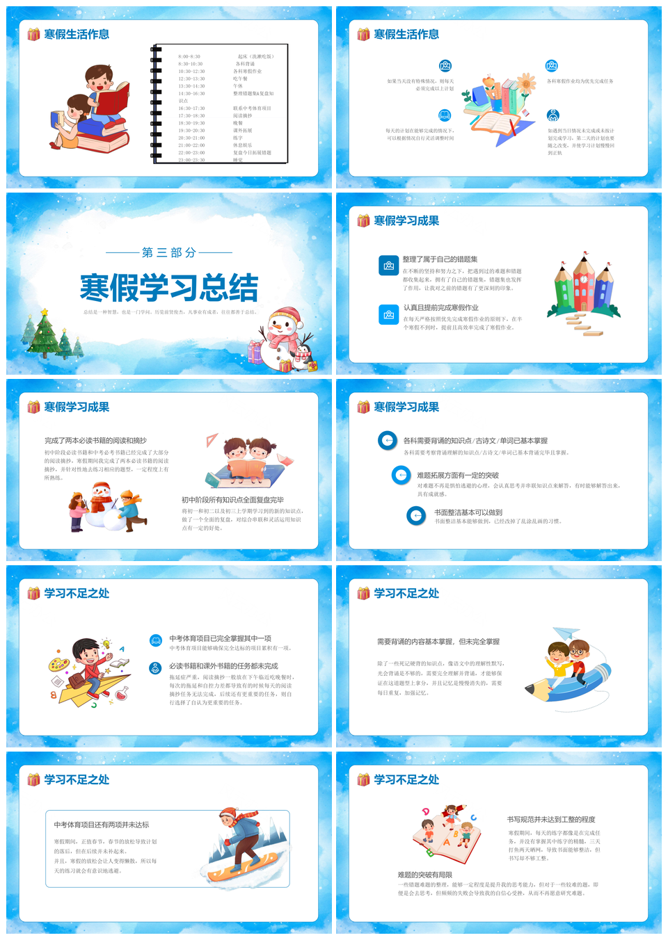 这是一张蓝色水彩雪人企鹅初三毕业班寒假总结班会PPT模板,包含蓝色、水彩、雪人、企鹅、初三、毕业班、寒假、总结、班会等主题内容,也可用作蓝色水彩雪人企鹅、初三毕业班寒假总结、毕业班寒假总结班会、蓝色水彩雪人、水彩雪人企鹅、初三毕业班寒假、毕业班寒假总结、寒假总结班会、蓝色水彩、水彩雪人、雪人企鹅、初三毕业班、毕业班寒假、寒假总结、总结班会等PPT场景使用。 风云办公提供的蓝色水彩雪人企鹅初三毕业班寒假总结班会PPT模板,下载格式为pptx,一共20页,作品中文字及图均可以修改和编辑,图片更改请在作品中右键图片并更换,文字修改请直接点击文字进行修改。