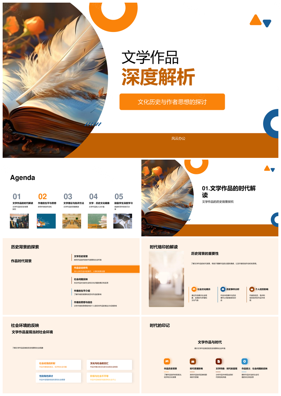 文学作品解析历史文化作者思想理论方法PPT模板推荐
