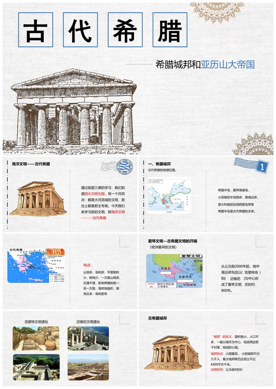 蓝色希腊城邦和亚历山大帝国初中历史教学课件PPT模板推荐