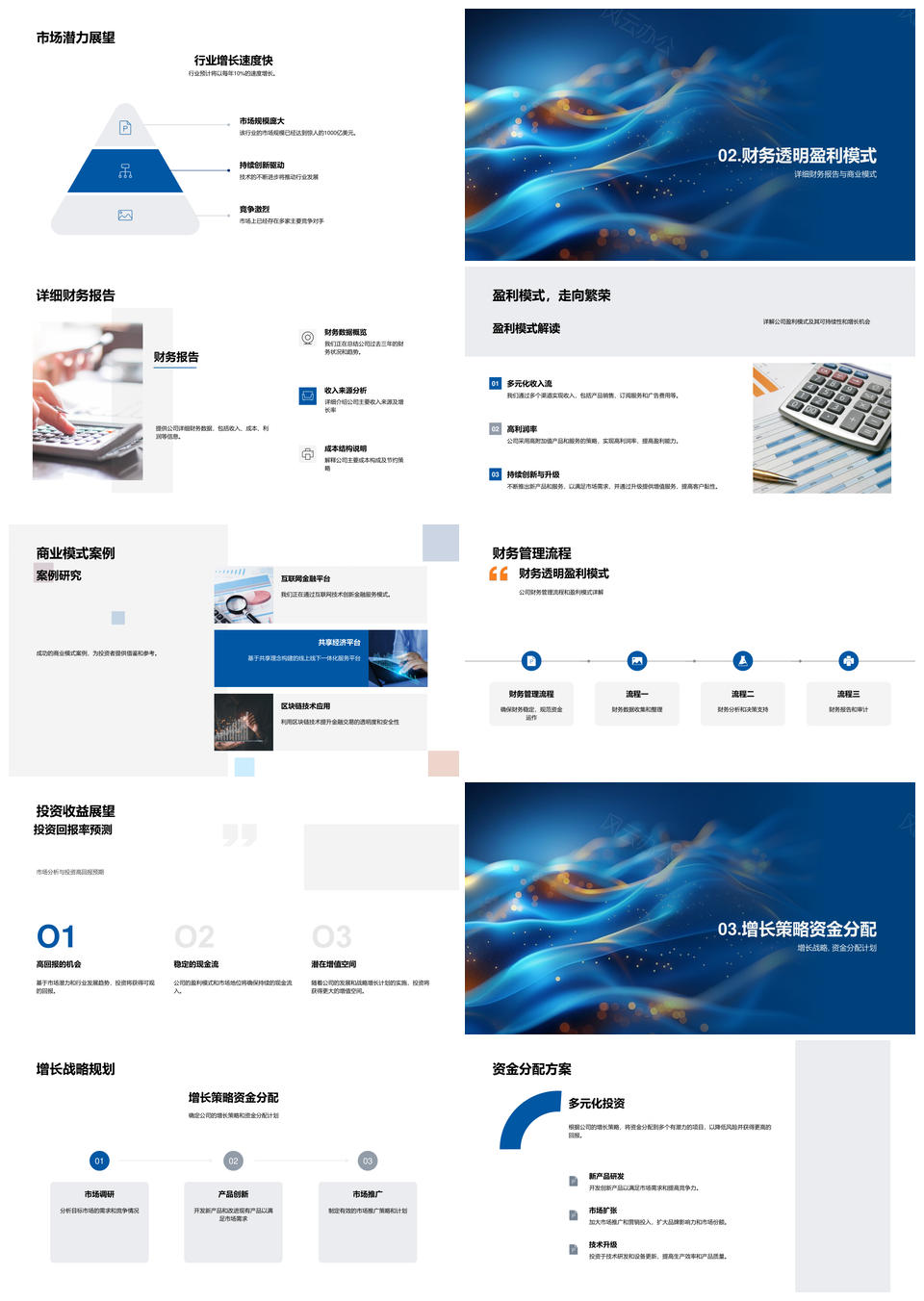这是一张融资计划解析商业模式投资价值财务盈利增长资金竞争力PPT模板,包含融资计划、解析、商业模式、投资价值、财务、盈利增长、资金、竞争力等主题内容,也可用作融资计划解析商业模式投资价值、解析商业模式投资价值财务盈利增长、商业模式投资价值财务盈利增长资金竞争力、融资计划解析商业模式、解析商业模式投资价值、商业模式投资价值财务盈利、投资价值财务盈利增长资金竞争力、财务盈利增长资金竞争力、融资计划解析、解析商业模式、商业模式投资价值、投资价值财务盈利、财务盈利增长、增长资金竞争力、融资计划解析商业模式投资等PPT场景使用。 风云办公提供的融资计划解析商业模式投资价值财务盈利增长资金竞争力PPT模板,下载格式为pptx,一共30页,作品中文字及图均可以修改和编辑,图片更改请在作品中右键图片并更换,文字修改请直接点击文字进行修改。